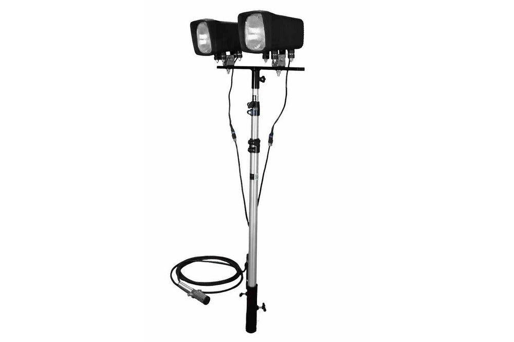 Made in the USA The Larson Electronics TPM-HID-2X6670 Pole Mounted Light Tower is a telescoping pole that allows operators to elevate two HID light heads adjust their height from 3 feet to 8.5 feet. The TPM-HID-2X6670 comes complete with two IP67 rated 70 watt HID light heads and produces a 12,600 lumen flood of light capable of illuminating an area 500’ in length by 500’ feet in width. This temporary pole mounted unit is multi-voltage capable and can be used with either 12 or 24VDC and is ideal for use as work area illumination, event lighting, emergency operations lighting, first responder applications, equipment lighting and is suitable for use on any vehicle that will accept a hitch mount. The TPM-HID-2X6670 work area light tower provides operators with a very versatile lighting solution for operations where easily managed illumination of large sized areas is required. Two IP67 rated 70 watt HID floodlights create a total of 12,600 lumens of bright white light and provide light coverage for an area 500’ long by 500’ wide. This unit can also be ordered in spotlight configuration to produce a beam 4200’ long by 180’ in width. This light tower is extendible from 3’ to 8.5’ and incorporates a flat surface side mounting system that allows operators to easily secure the fixture to vehicle beds, lift carts, or trailer walls at any location. This mounting system provides extremely secure placement of the tower in areas where high winds are commonly encountered as the weight of the vehicle removes the possibility of the unit swaying excessively or tipping over. | ||||||||||||