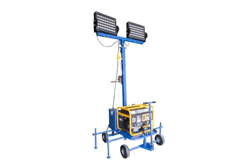 Larson Mini LED Light Tower with 3000VA Generator - Two 480 Watt LED Lamps - 120k Lumens - 10 Hour Runtime