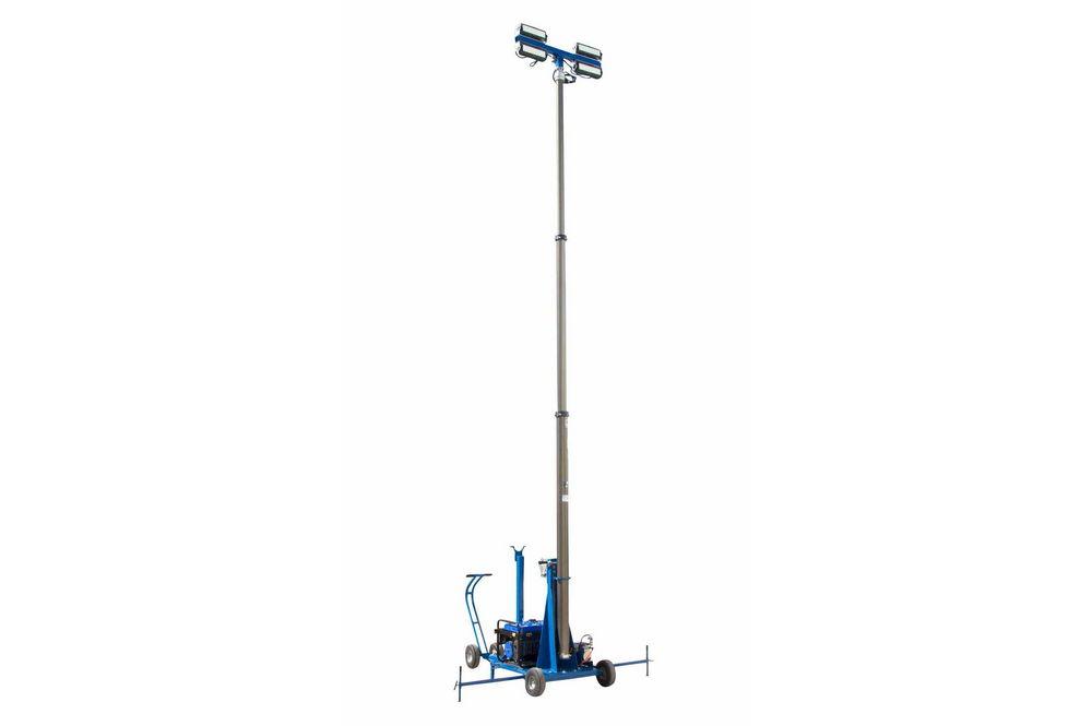 The WAL-PML-4X160LED-3G Mini light tower is a portable lighting system designed for stand alone operation and high mobility while providing enough output to illuminate approximately 1 acre of area effectively. Equipped with a heavy duty pneumatic mast, 4000 KVA generator and four 160 watt LED light heads, this mini tower provides operators with an easily deployed lighting system that can provide large scale illumination for up to 12 hours on a single tank of gas.