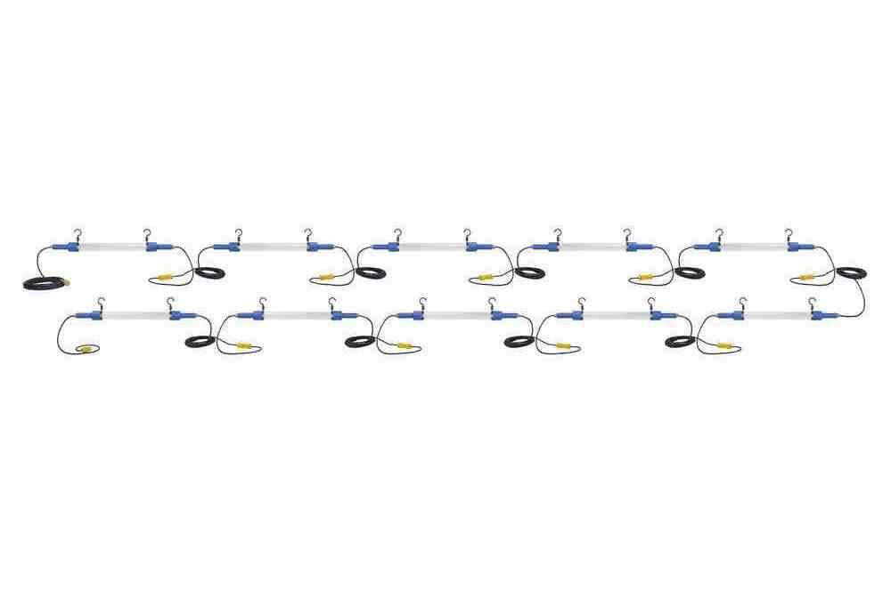 The WAL-TLK-10-6X-FTL5-LED consists of ten, 28-watt T8 tube style LED bulbs for comprehensive and versatile illumination in tents and military camp sites. During use, the system offers 35,000 lumens of output @ 3,500 lumens per LED tent light. Equipped with 136` of SOOW cord (total length), this unit operates on universal 120-277V AC, 50/60 Hz.