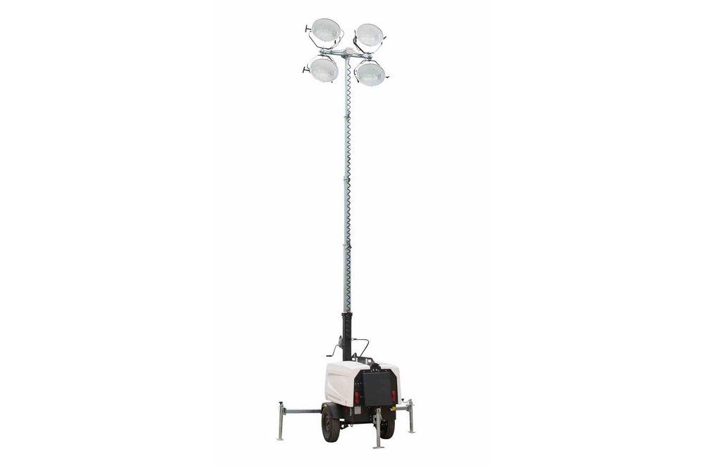 The WCDE-4-MHL-PNTL mobile light tower is a self contained towable light tower package that produces enough light to illuminate an area up to 7 acres in size. This unit contains a water cooled diesel engine powering a 6,000 watt generator, which supplies the current to four 1,000 watt metal halide lamps producing 110,000 lumens each for a combined total of 440,000 lumens of light. This unit can run uninterrupted for 60 hours straight without refueling and includes a telescoping light mast which can elevate the four metal halide lamps to a height of 30 feet. This mobile floodlight package is ideal for emergency services, large scale event illumination, construction, mining, industrial operations and anywhere an extended operation capable mobile lighting solution is needed.
