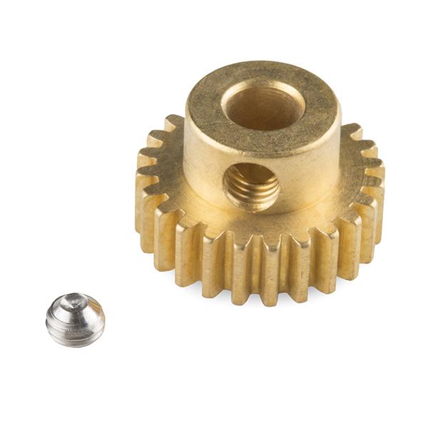 These pinion gears attach to a 6mm D-shaft or gear motor using a setscrew. These gears have 24 teeth with a gear pitch of 32P, an outer diameter of 0.813, and a bore of 6mm.