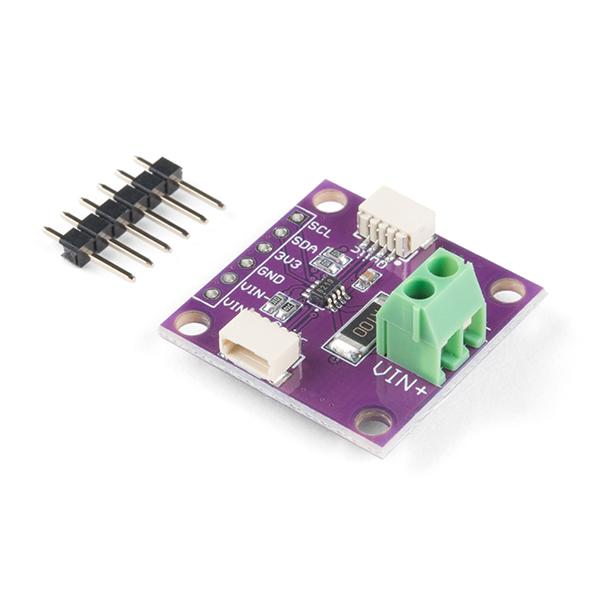 This sensor can measure voltage up to 26VDC and current up to 3.2A. The I2C interface makes it easy to daisy chain multiple devices and receive data via the Qwiic connect system.