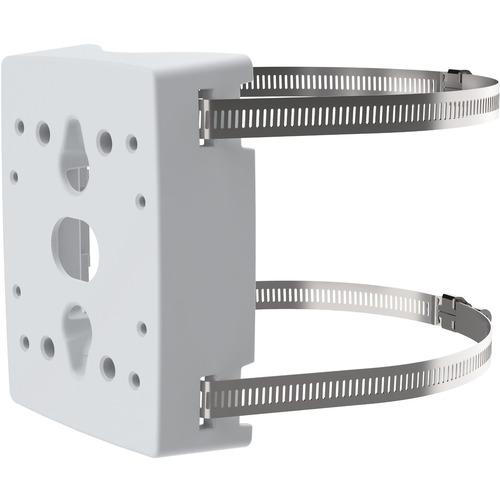 AXIS T91B47 Pole Mount is designed for both indoor and outdoor use. It is available in two versions, one with steel straps for poles between 50-150 mm (2-6 in) in diameter and one with steel straps for poles between 100-410 mm (4-16 in) in diameter.