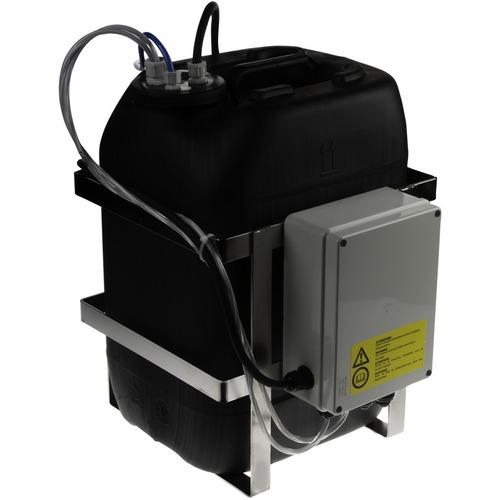 Washer kit used for spraying cleaning fluid on the windows of some Axis positioning cameras. The kit contains a 23 liter (6 gallon) tank, a pump for delivery cleaning fluid up to 11 m (36 ft), a hose, a nozzle and a nozzle support bracket to the positioning unit.