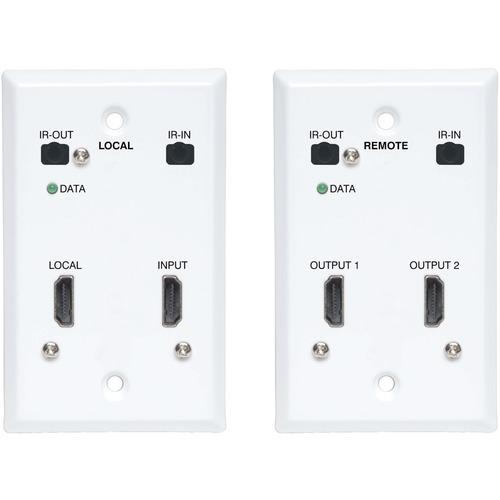 Tripp Lite Video Extender Transmitter/Receiver - 1 Input Device - 1 Output Device - 230 ft (70104 mm) Range - 2 x Network (RJ-45) - 1 x HDMI In - 2 x HDMI Out - 4K UHD - 3840 x 2160 - Twisted Pair - Category 6 - Wall Plate - TAA Compliant