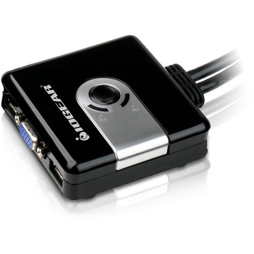 The IOGEAR 2-Port Compact USB VGA KVM allows users to share a VGA monitor, USB mouse, and USB keyboard between two computers. Users can switch between computers using a manual switch located on the top of the KVM unit. It is entirely plug-n-play and requires no software to run. It is the perfect KVM for those who want a well priced, basic KVM that will allow them to multi task with two computers at their disposal.