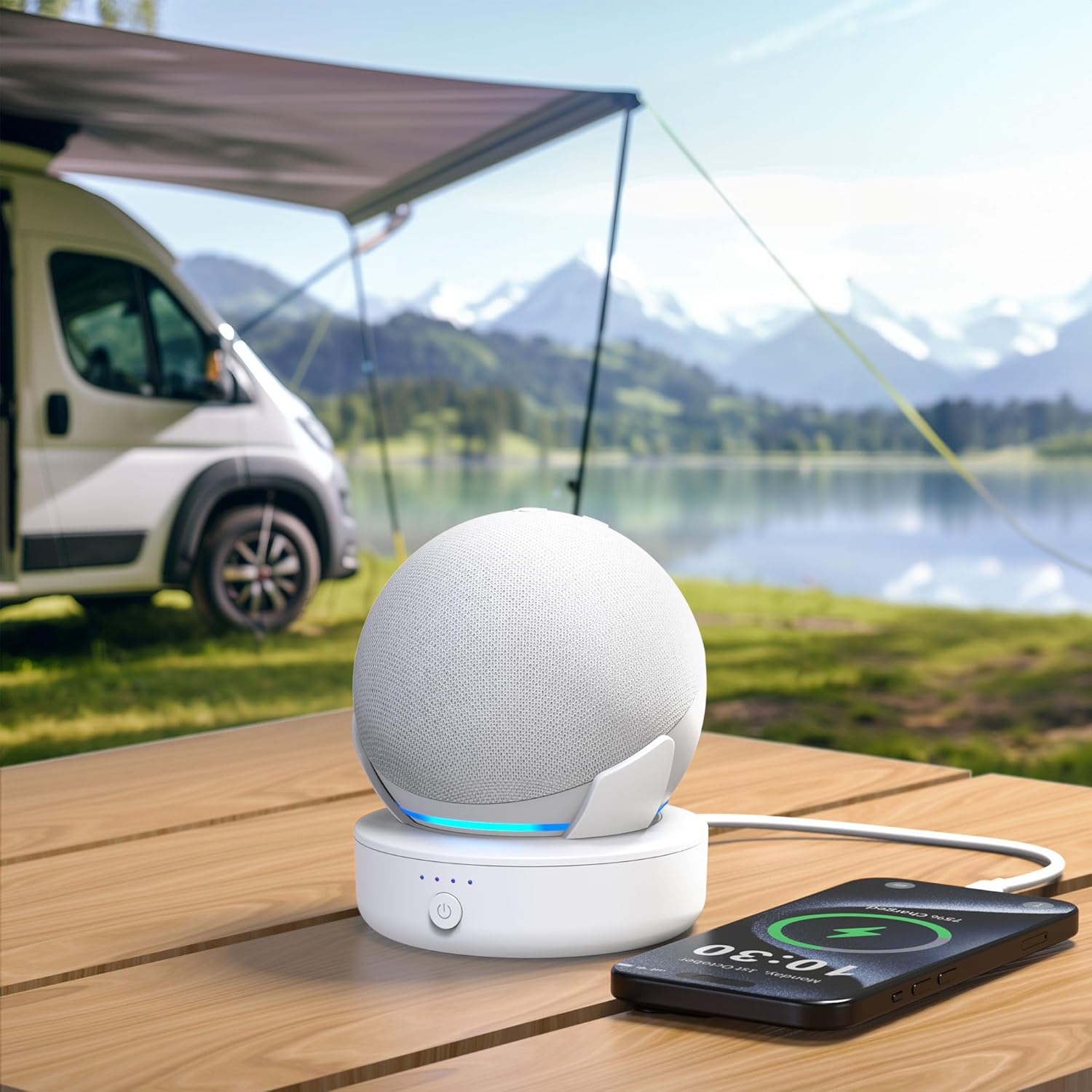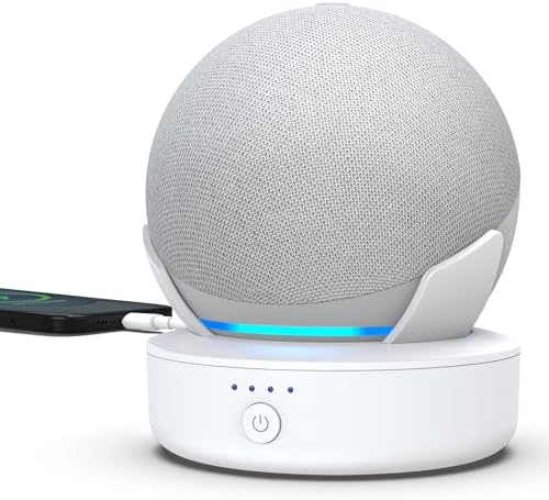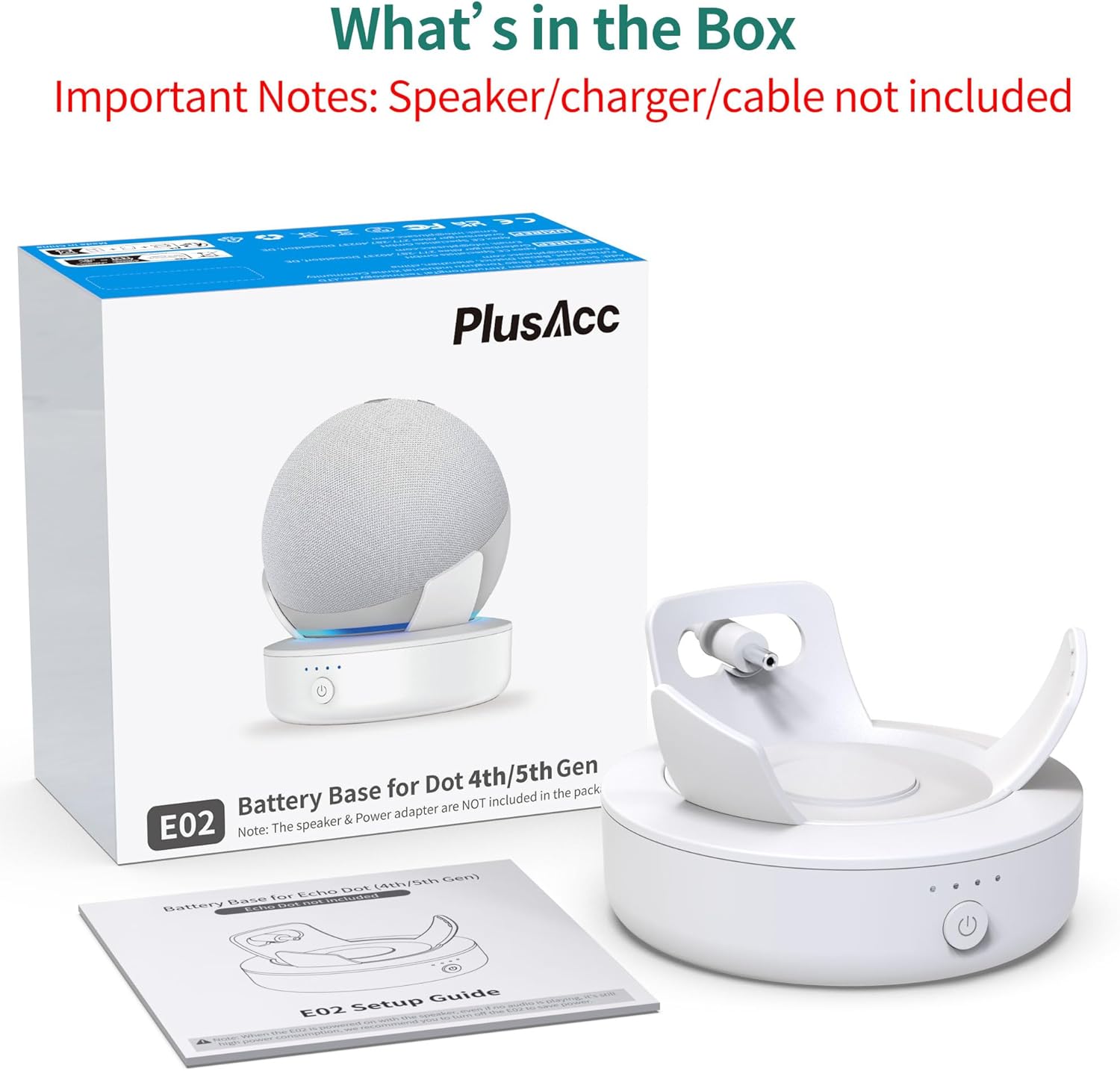 Compatibility:The battery base is compatible with Dot 5th Generation, Dot 4th Generation and other USB-powered devices, such as smartphones, earbuds, smartwatch, tablet and more. It is equipped with a USB-C port in the back. Please use the Dot original adapter for input port. Not for Ech0 4th Gen. (Notes: The package contains a battery base, do not include device.)