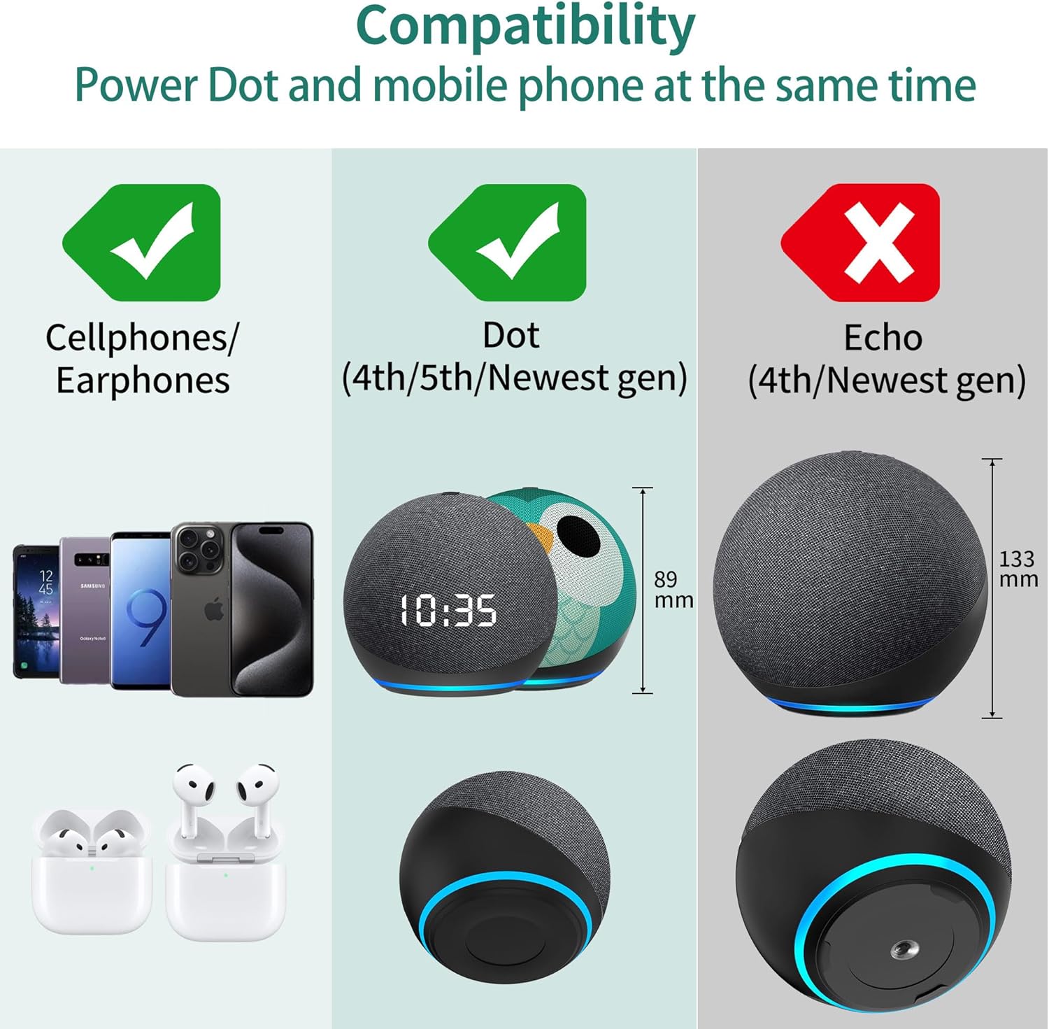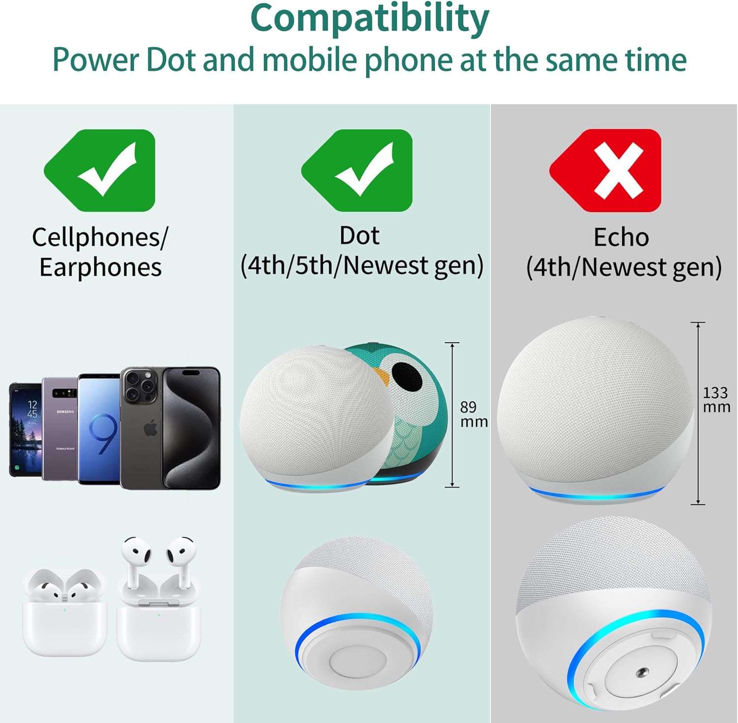 Compatible Devices Dot 5th Gen & Dot 4th Gen & Galaxy S24/S24 Ultra/S23 & iPhone 15/14/13/12 & Earbuds & Smartwatch and more
