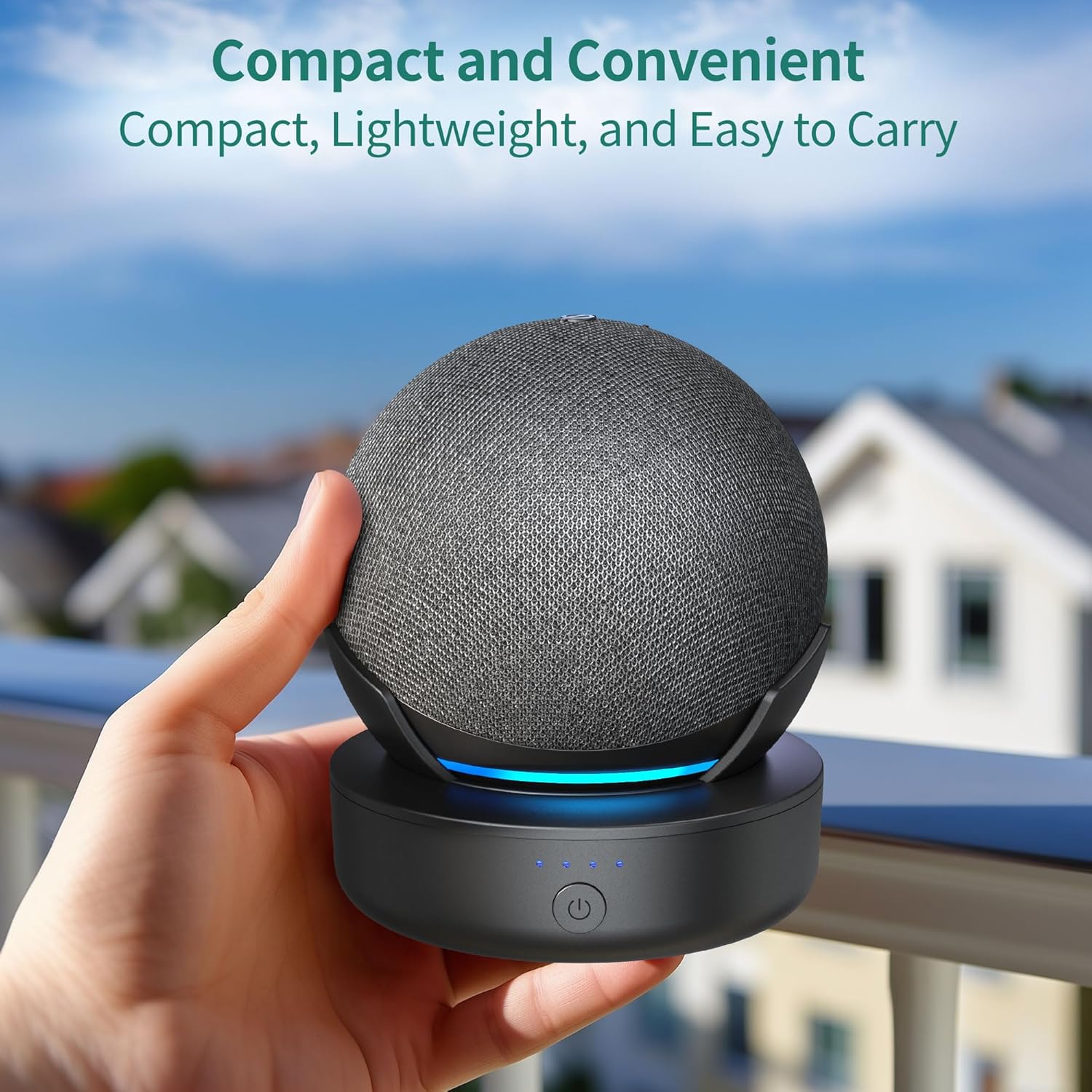 Really Make A Dot Portable: No more tethered to the wall. No need to connect to a mains supply. Our charging base is lightweight and completely portable. You can move it room to room, and take it to the patio, pool, beach and out in the garage. You can also set up it as a stereo pair when having a party outside or enjoying a summer evening