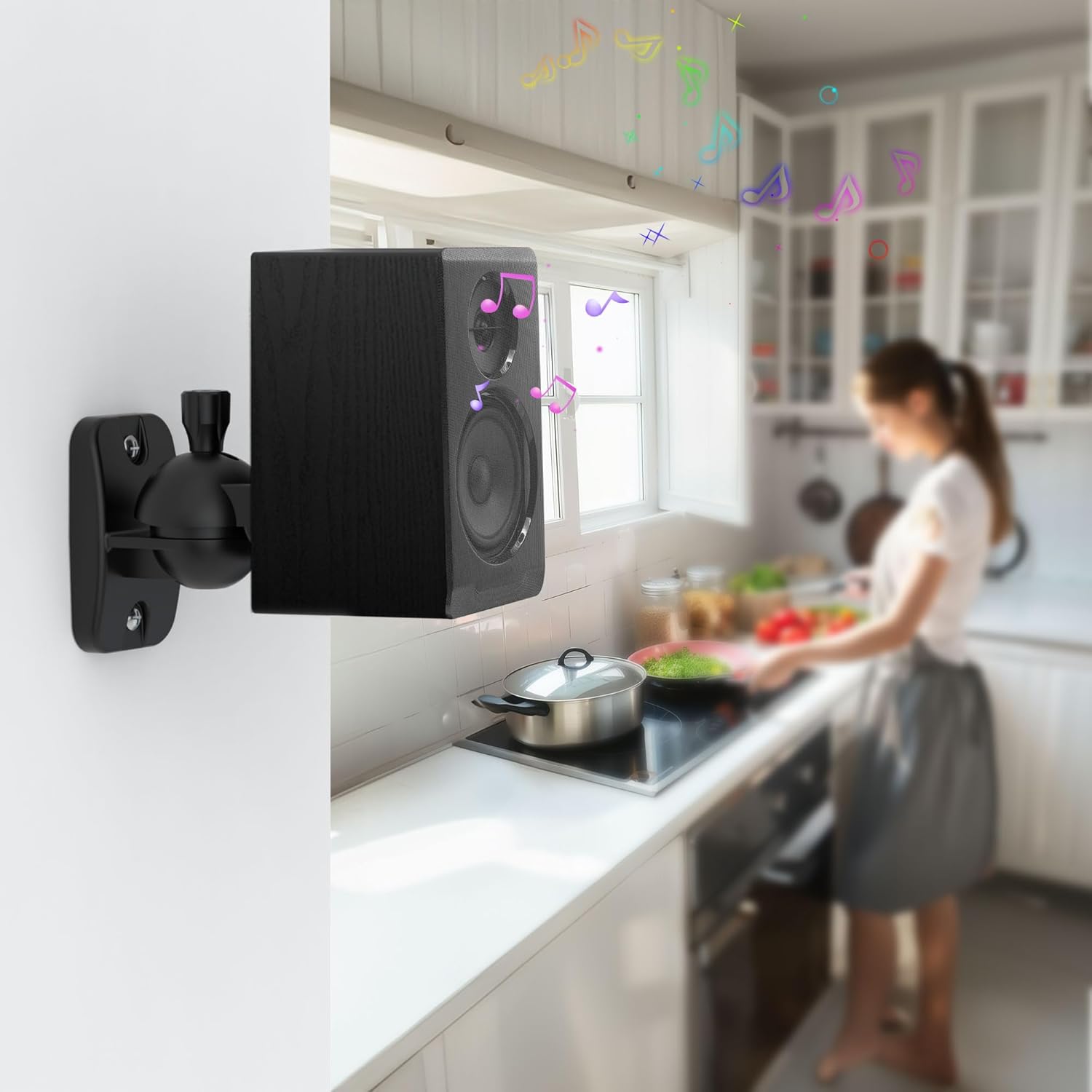 PlusAcc Speaker Wall Mount Brackets – Surround Sound Speaker Wall Mounts with 20° Tilt & 80° Swivel, Bookshelf Speaker Wall Screws Mounts, Holds Up to 7.7 lbs, Space-Saving Design (2-Pack, Black)