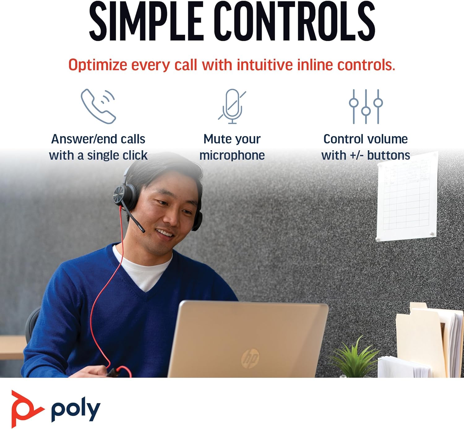 Poly Blackwire 8225 Premium Wired Headset (Plantronics) – Active Noise Canceling – Hi-fi Stereo - Connect to PC/Mac - Works w/Teams, Zoom - Amazon Exclusive