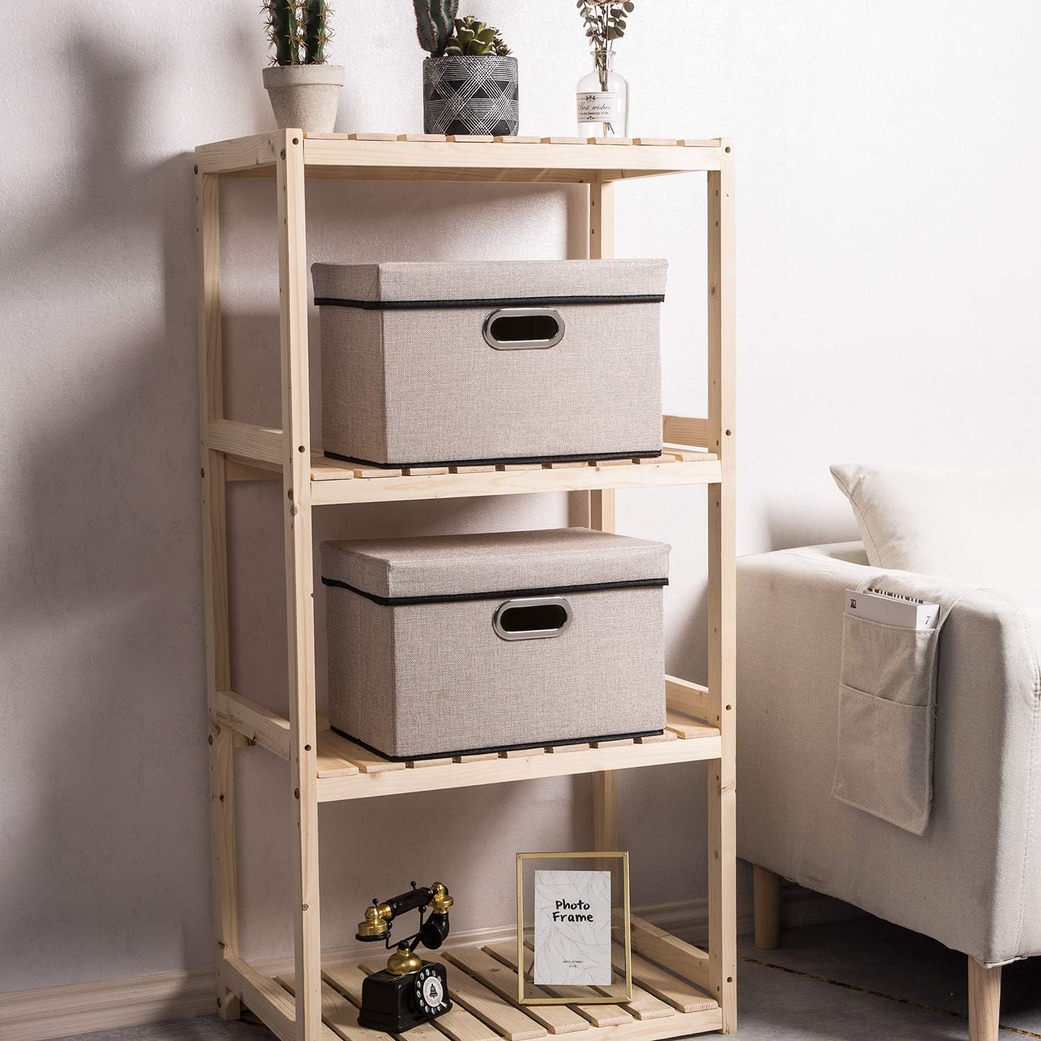 - PRANDOM Large Foldable Storage Bin with Lid [1-Pack] Linen Fabric Decorative Storage Box Organizer Containers Basket Cube with Handles Divider for Bedroom Closet Office Living Room (17.7x11.8x11.8")