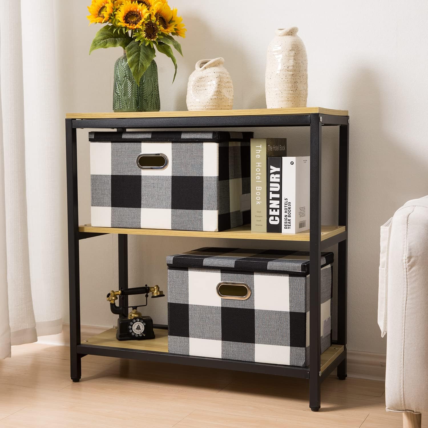 - 【Space Saving】Sturdy side design makes these bins collapsible which will take full advantage of your closet shelf, and also can be folded flat to save space when not in use.