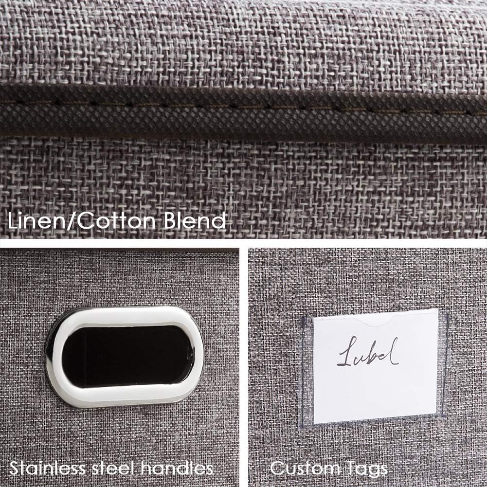 【High Quality】Made of high quality linen fabrics eco-friendly, fabrics durable material, and it doesn't have any odor.The handle is made of stainless steel, Never rusts! - 【Fashionable Bins】Designed to match interior decor and style in any room in the home or office. Enjoy the relaxing ambiance of the soft gray and natural black neutral color scheme.
