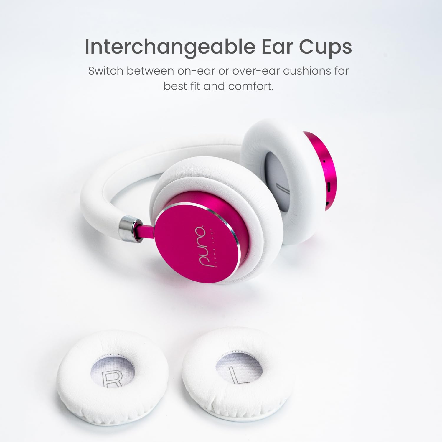 - INTERCHANGEABLE EAR CUPS: Turn on-ear to over-ear for a better seal and more comfort.