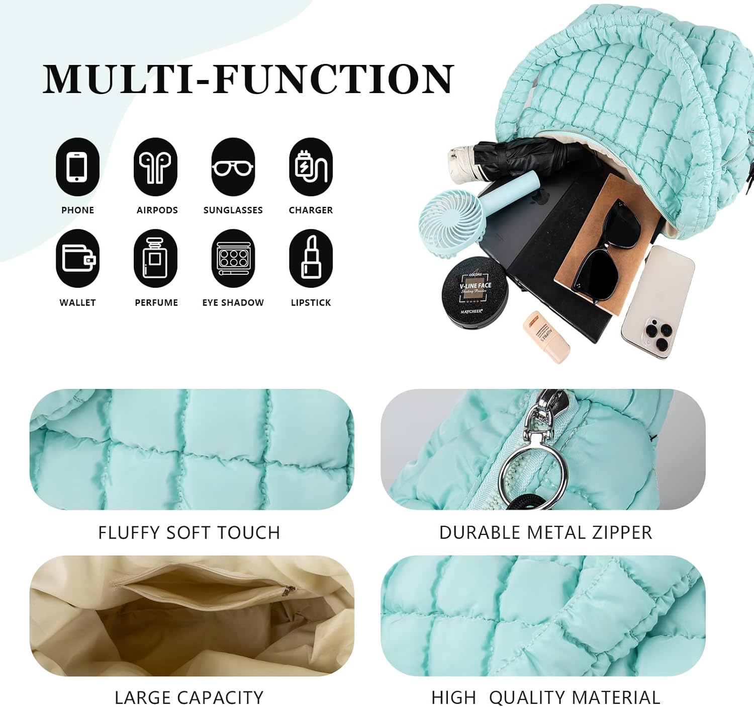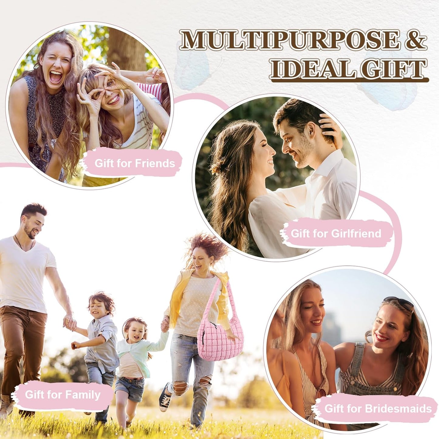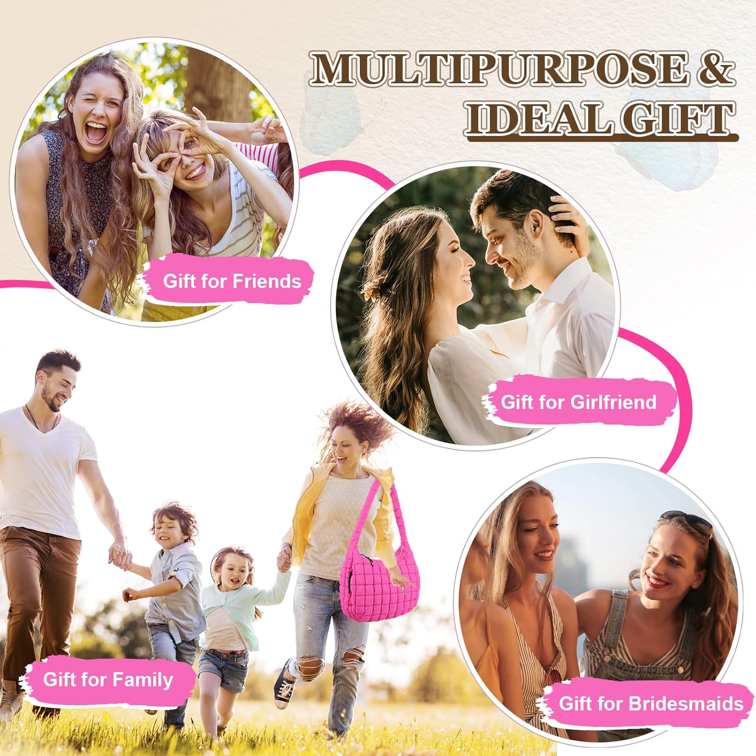 - 【Multipurpose & Ideal Gift】Nylon Quilted Tote Bag is suitable for girls, women as a casual travel bag, suitable for gym, supermarket, home, beach, party and vacation etc. Perfect gift for friends, girlfriends, bridesmaids, family and colleagues.