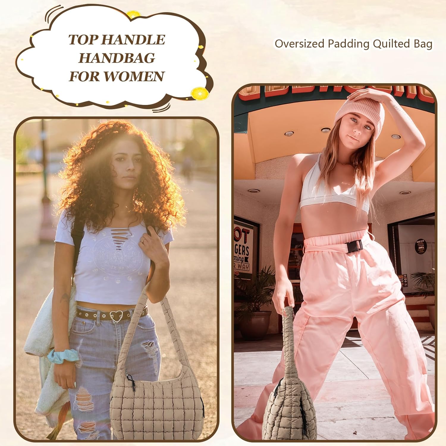 Quilted Puffer Tote Bag Large Crossbody Shoulder Bag with Zipper, Nylon Hobo Oversized Handbag