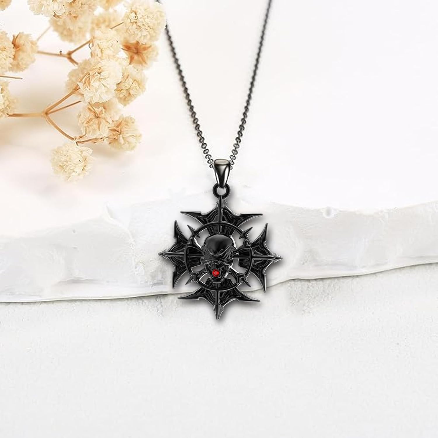 - 【Halloween Skeleton Necklace Black】In ancient Egyptian culture, skulls were seen as a symbol of death and rebirth. The sterling silver black skull is paired with red garnets which for a more Gothic revival style. It's the perfect Halloween gift for family and friends.