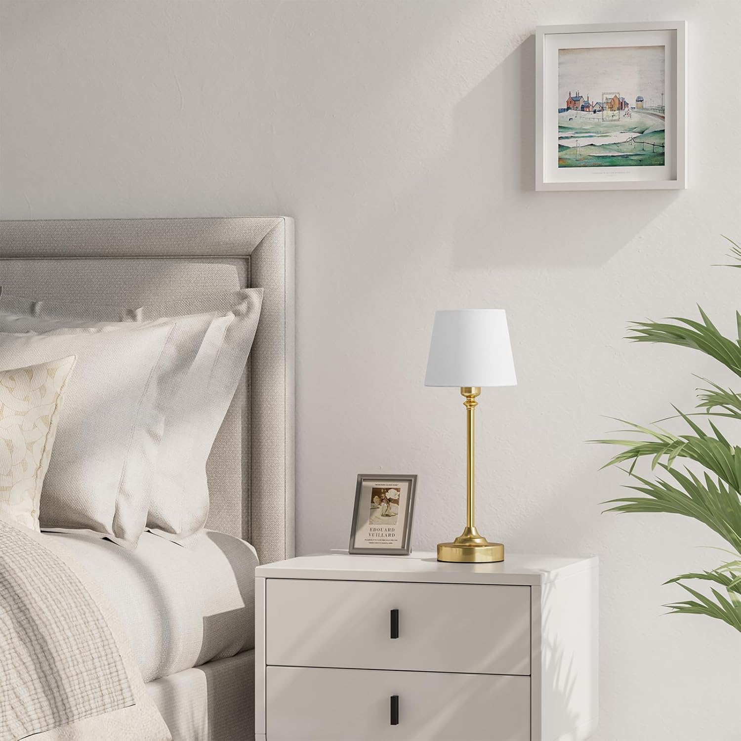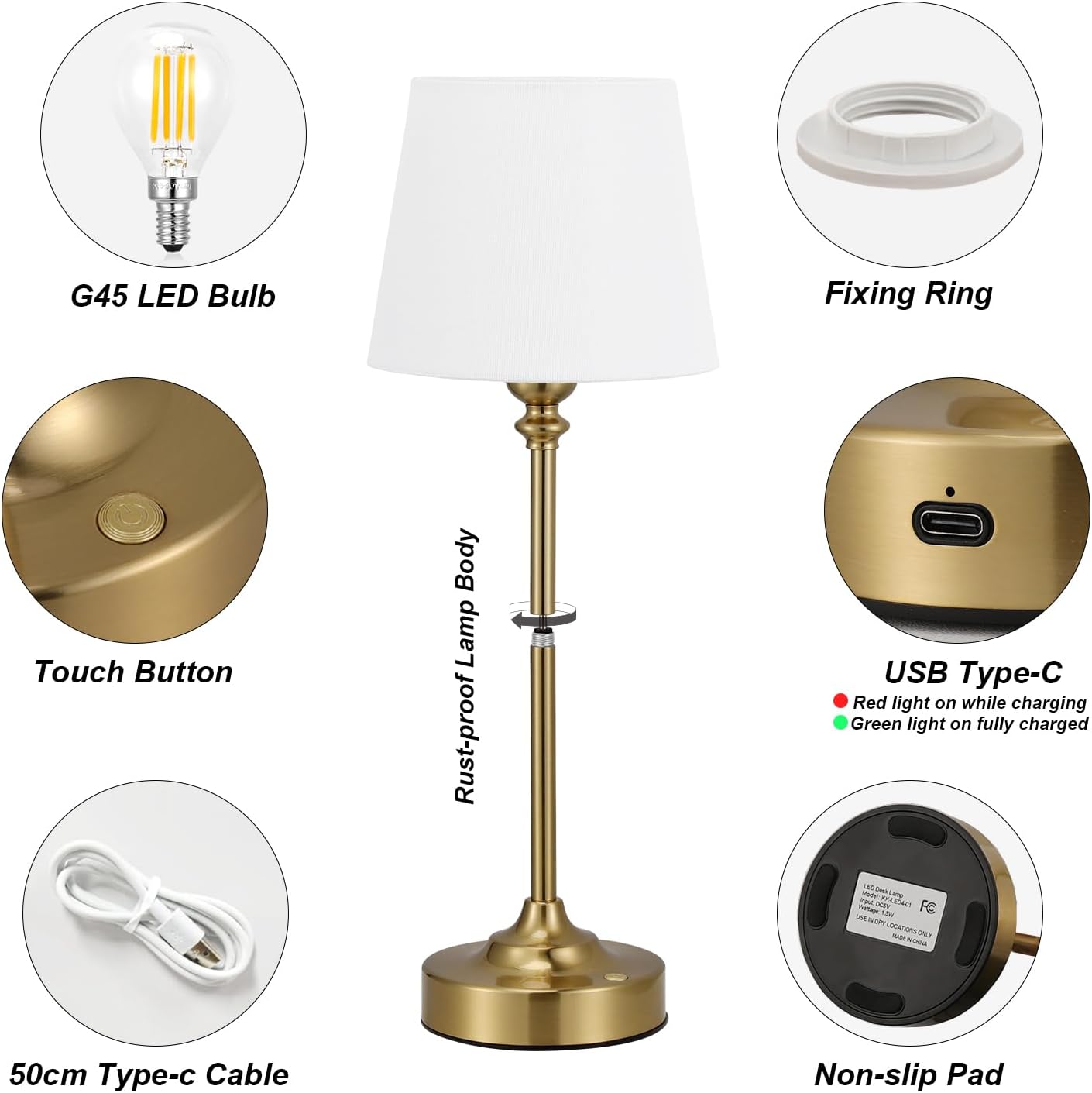 Superior Build Quality - The brass lamp body undergoes precision electroplating for enhanced corrosion and rust resistance. Its radiant metallic finish, paired with the linen shade, elevates your space with refined elegance. The integrated 3000K dimmable LED emits a soothing warm glow that cultivates an inviting, romantic ambiance.