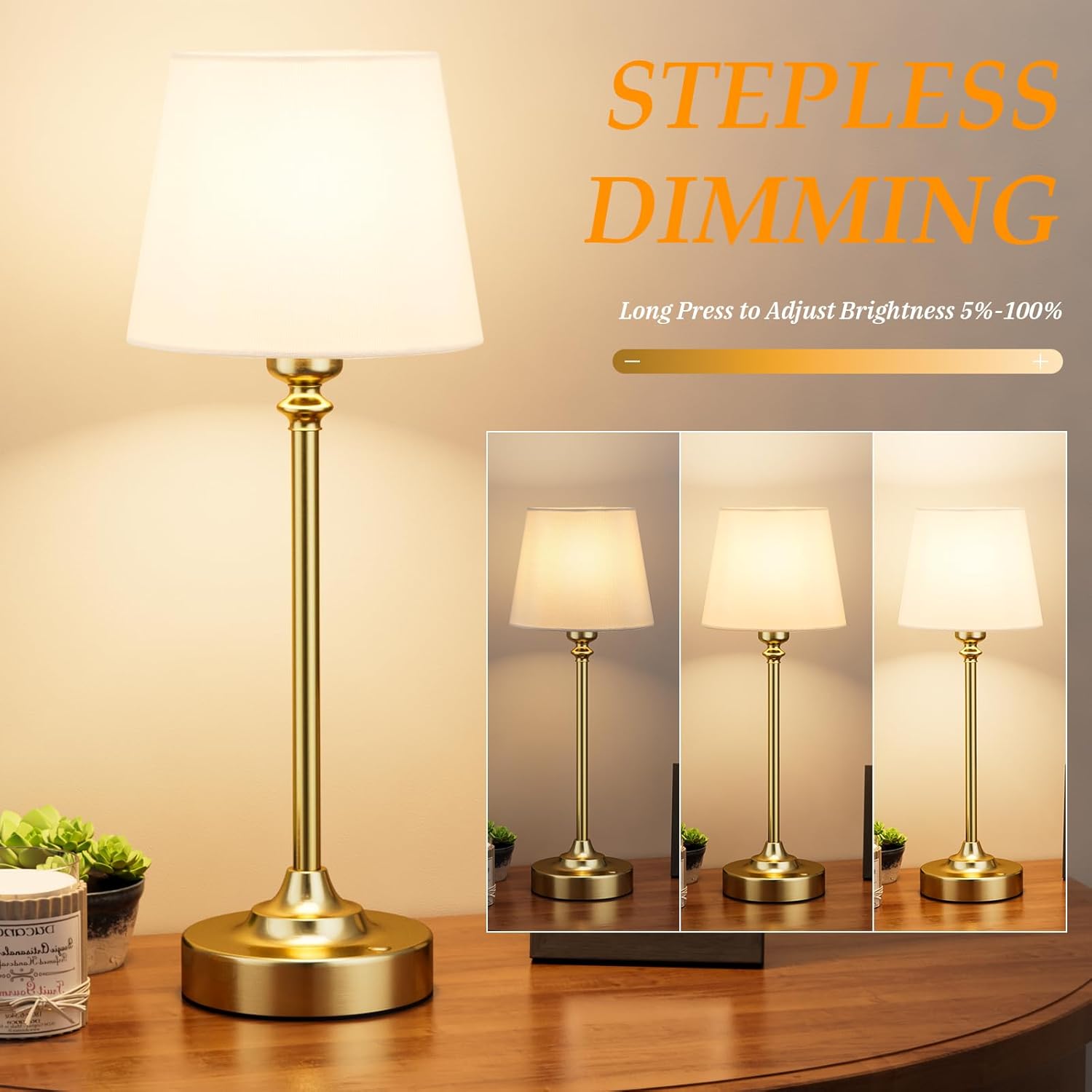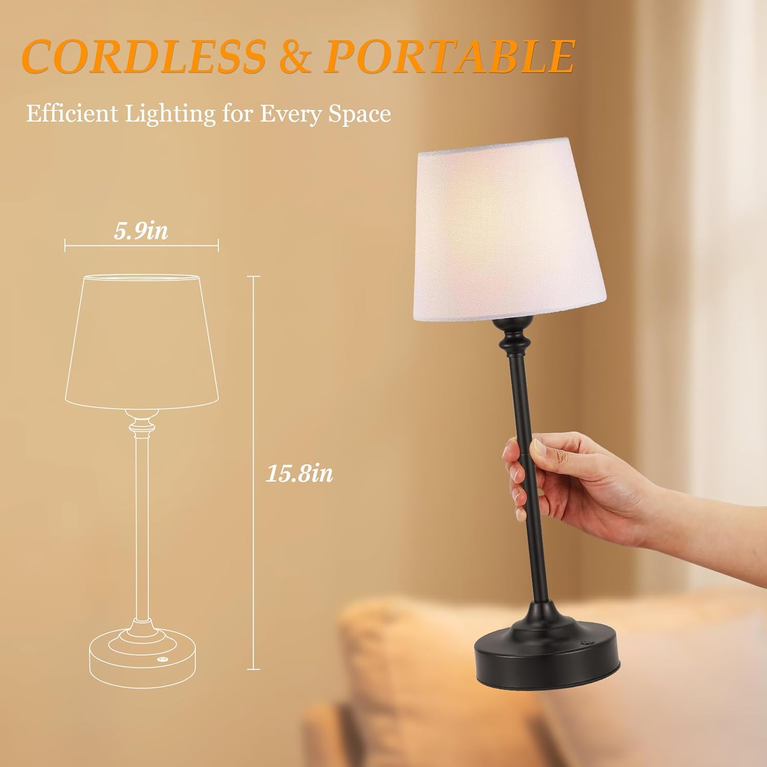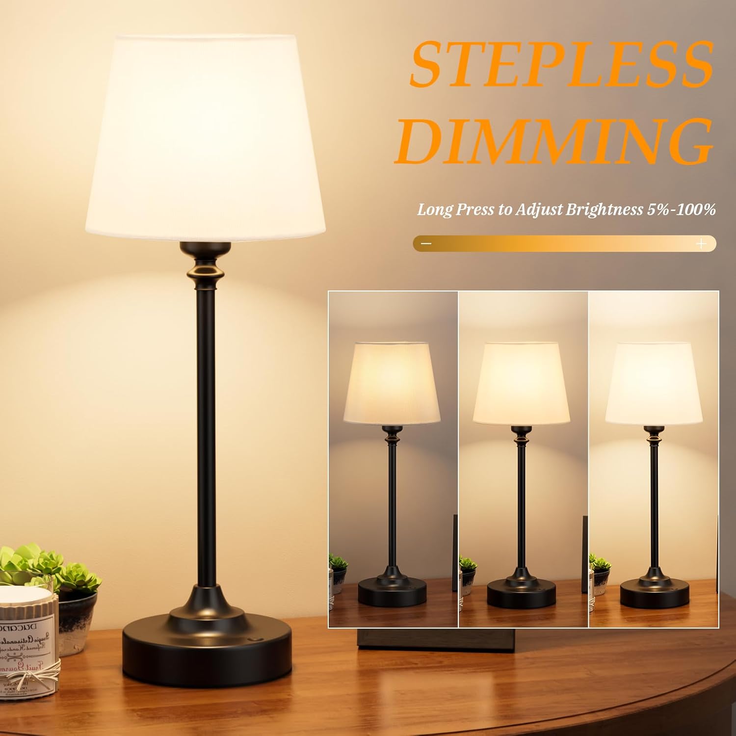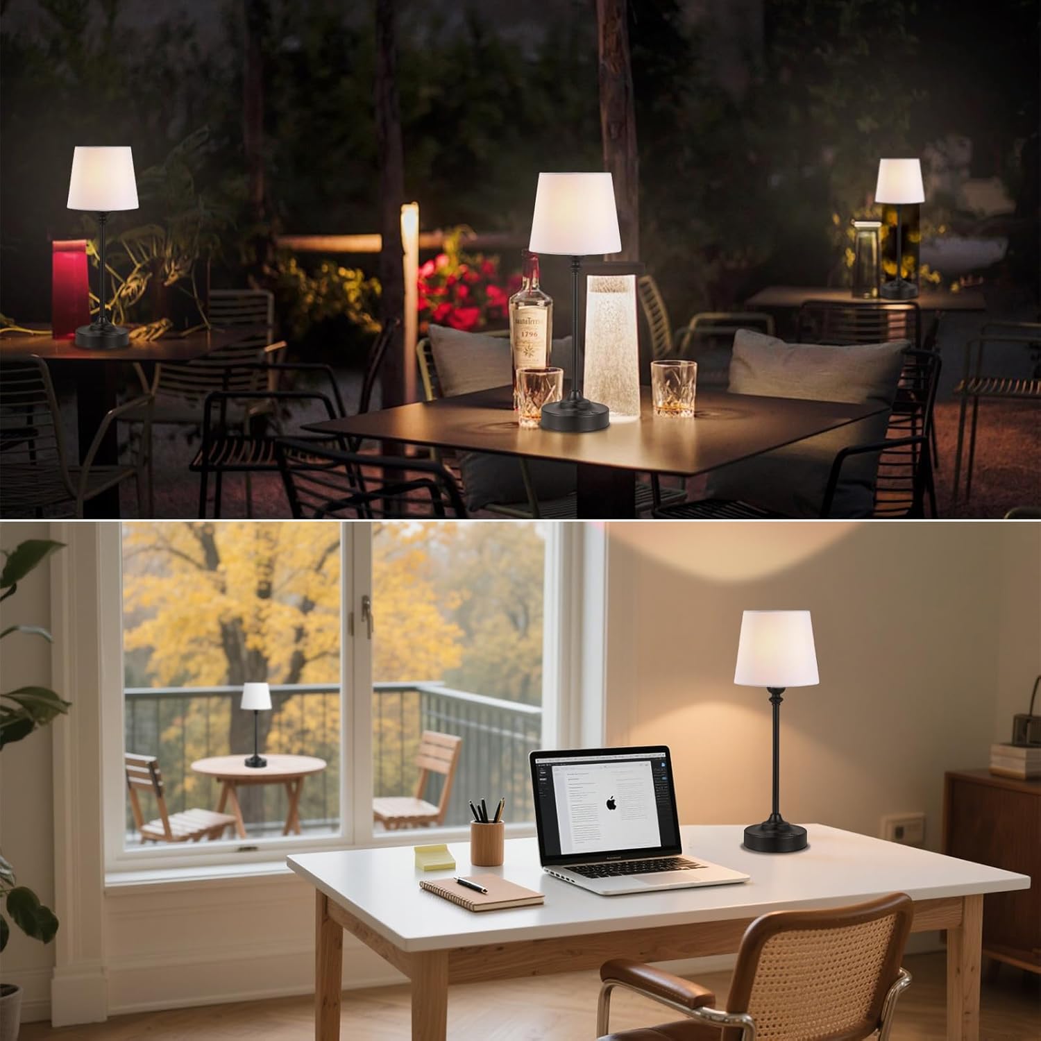 Touch Control with Stepless Dimming - This cordless lamp features a sensitive touch button—tap to turn on/off instantly, or long-press to smoothly adjust brightness from 5% to 100%. With automatic brightness memory, it always starts at your perfect light level. Perfect for bedside, dining table or hallway use.
