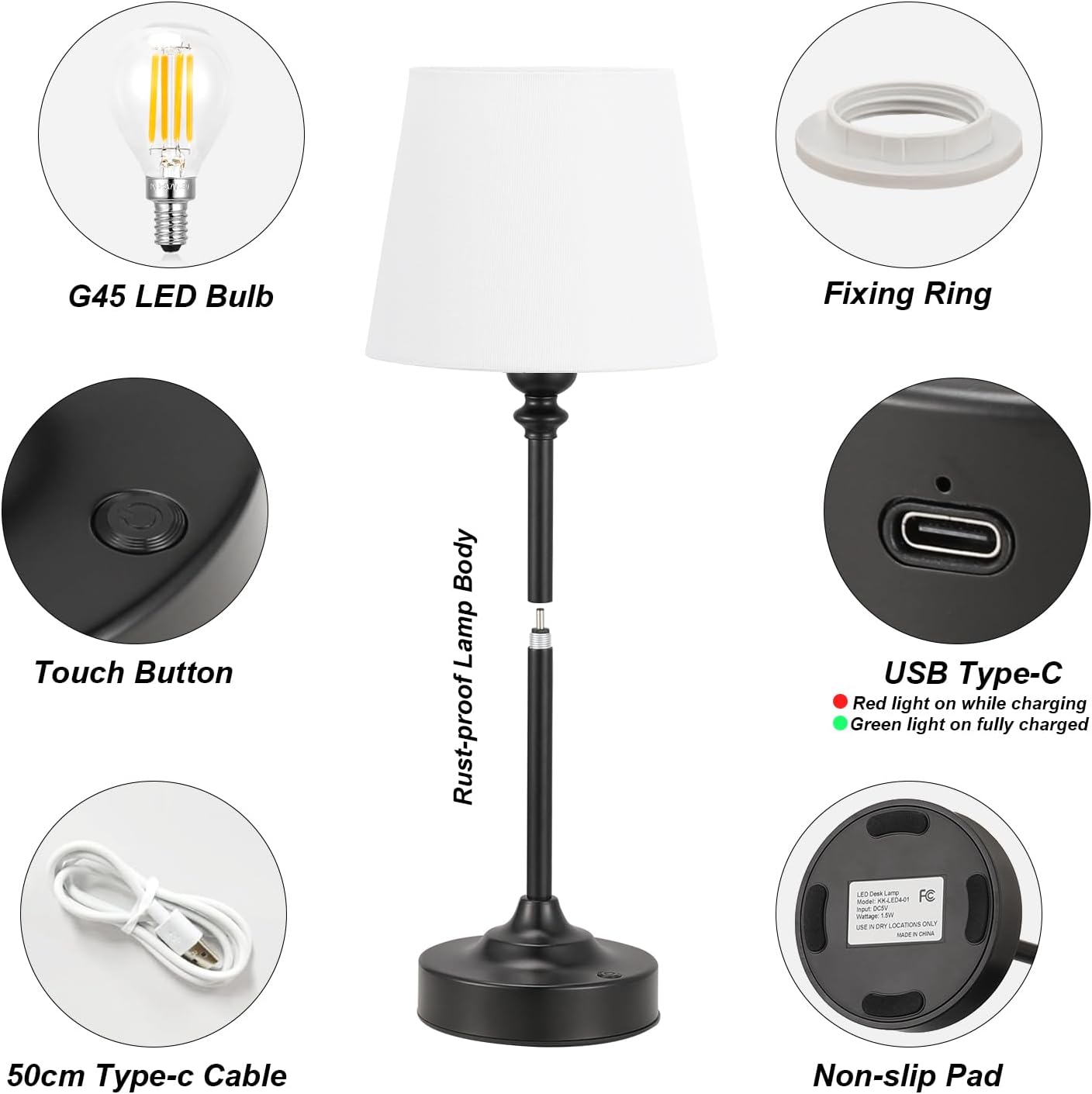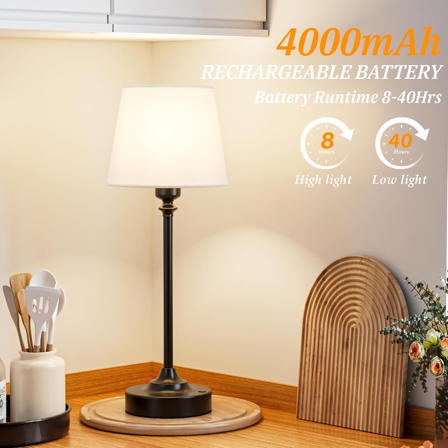 Large Capacity Rechargeable Battery - This rechargeable lamp features a built-in 4000mAh battery that fully charges in just 6 hours via USB-C. Enjoy 8-40 hours of cordless lighting (depending on brightness) with an impressive 500-1000 charge cycles (Approximately 3-5 years).