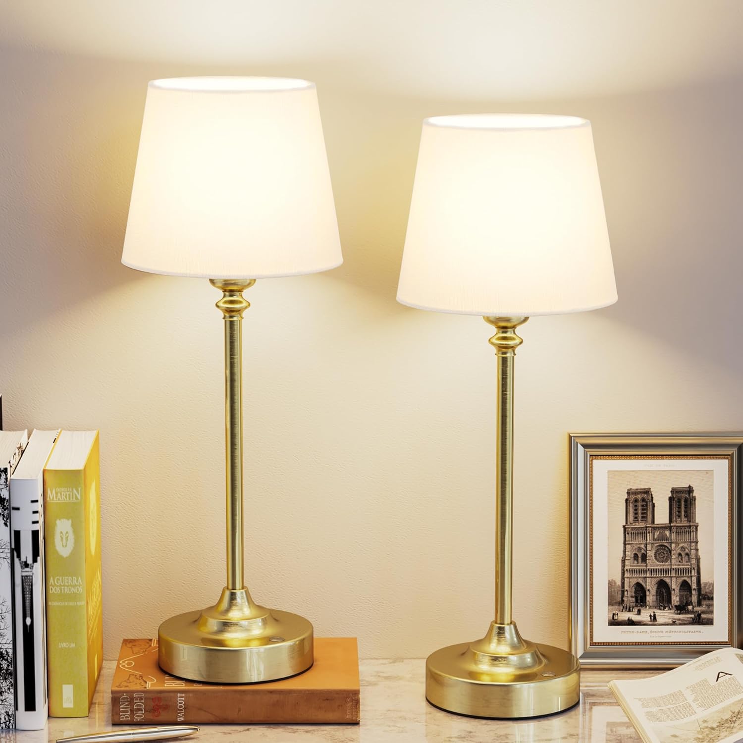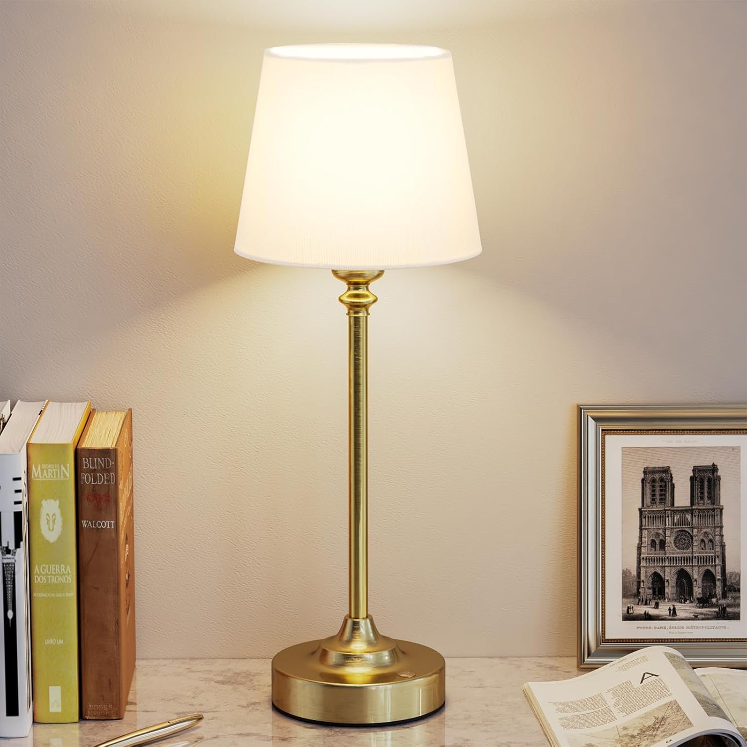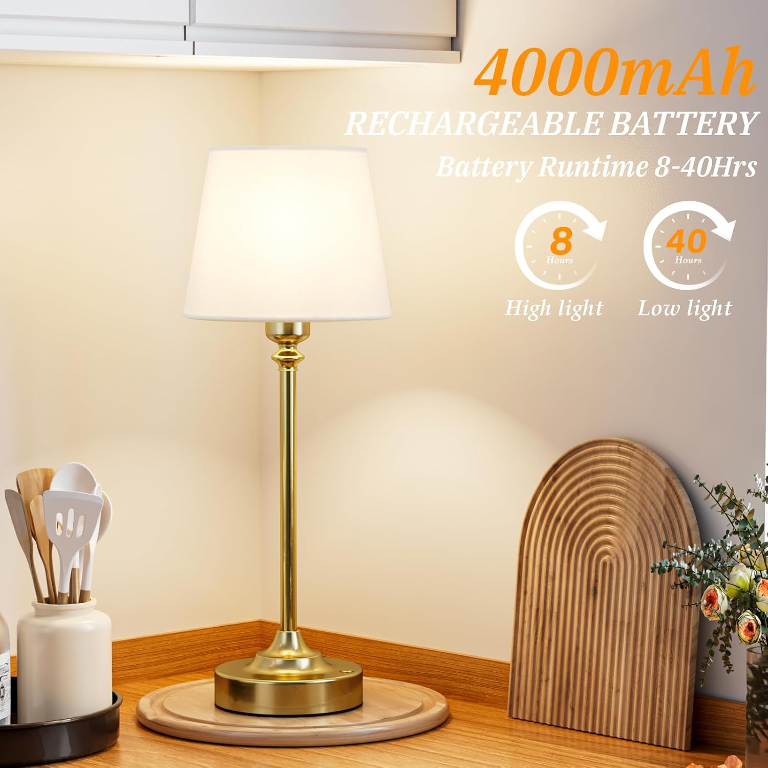 Rechargeable Cordless Table Lamp: 3000k Stepless Dimming, 1 Pack Brass 4000mAh Battery Operated Wireless Touch Lamp for Dining Table, Counter, Living Room, Bedroom
