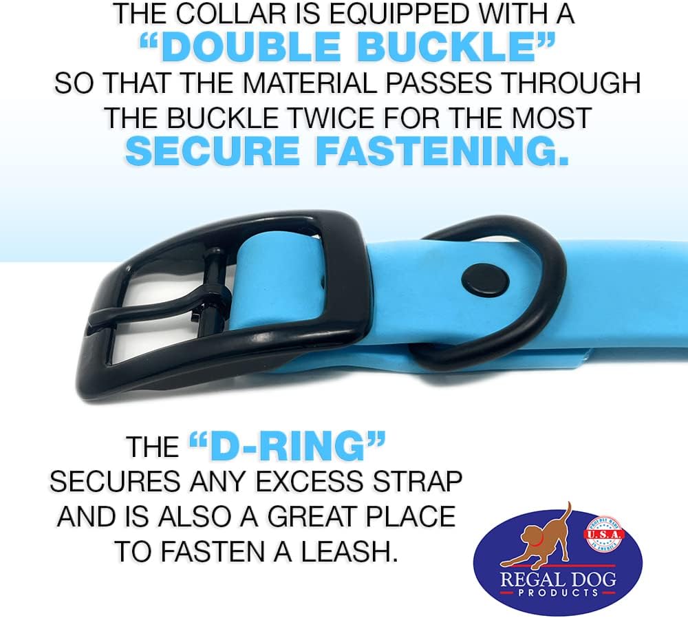 - HIGH QUALITY: This adjustable waterproof dog collar is proudly made by Regal Dog Products – a Company that specializes in dog supplies, dog accessories, and pet collars. We are confident that you and your pet will love our products. Because we never compromise on the quality of our product, that is why our dog collars are made with the best quality raw material available in the market.
