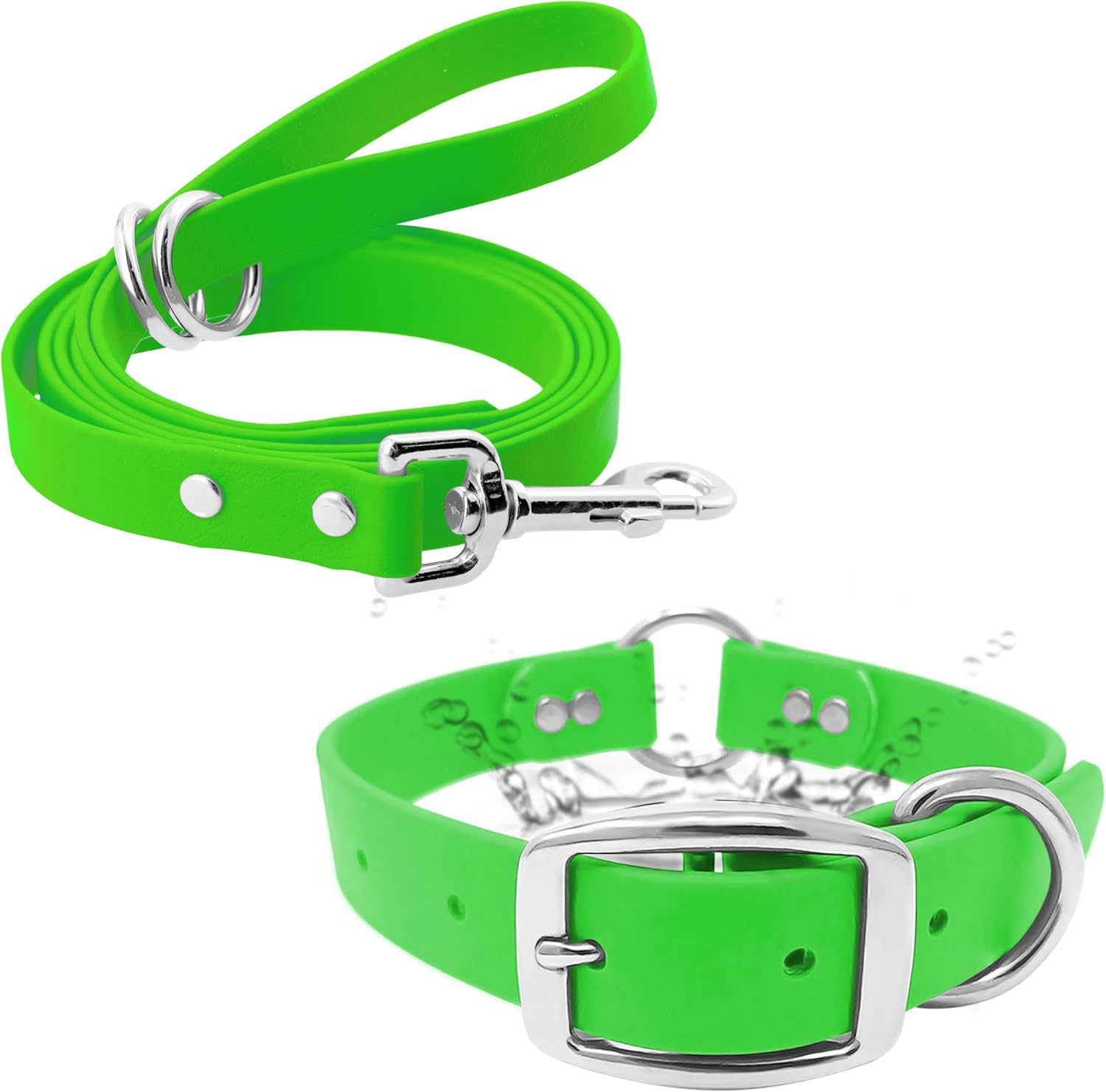 Regal Dog Products Small Orange Waterproof Dog Collar and Leash Set - Vinyl Coated, Biothane Puppy Pet Training Collar with Heavy Duty Center Ring & 5'ft Leash - Other Sizes for Medium & Large Dogs