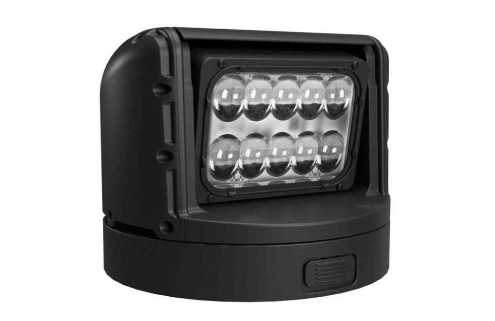 The LE-9600-10-M is capable of both spot and flood light beam operation. An automatic electronic lens diffuser enables fast switching between the two light configurations. Manual light attachments are not required to switch between spot and flood light beams. This military LED light offers 360 degrees of endless horizontal rotation. The light head can rotate continuously in one direction and does not need to stop and go back to the other direction, resulting in faster light placement and reaction.