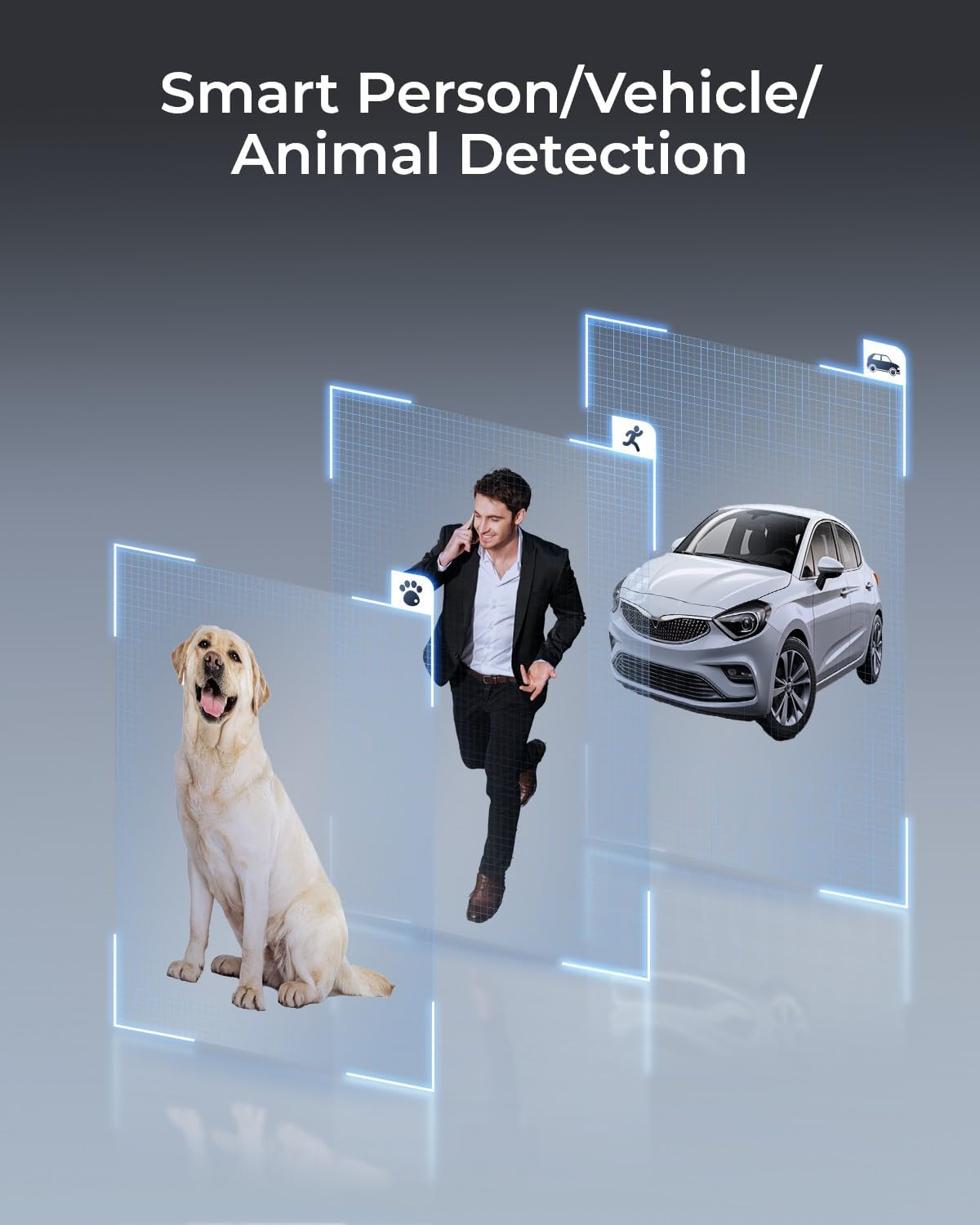 - Smart Detection & 2-Way Talk: Accurately identify person/vehicle/animal (not only cats/dogs but a wide array of animals) movements, reducing false alarms. Engage in seamless conversations with individuals near the camera via two-way talk, simple yet efficient.