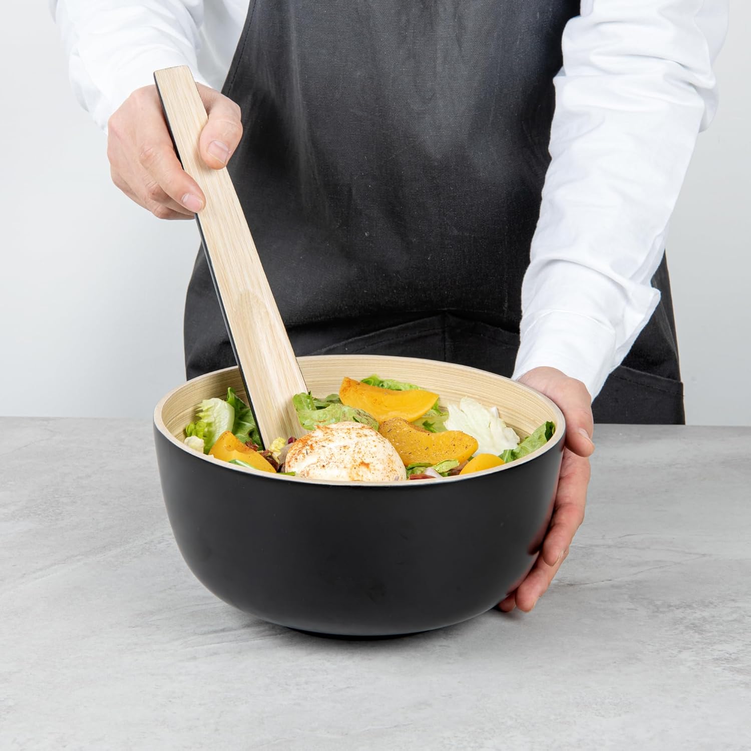 • SOPHISTICATED PRESENTATION: With a fashionable black color, this bamboo serving bowl levels up the chic factor of your food presentation. Perfect for showing off your gastronomic creations.