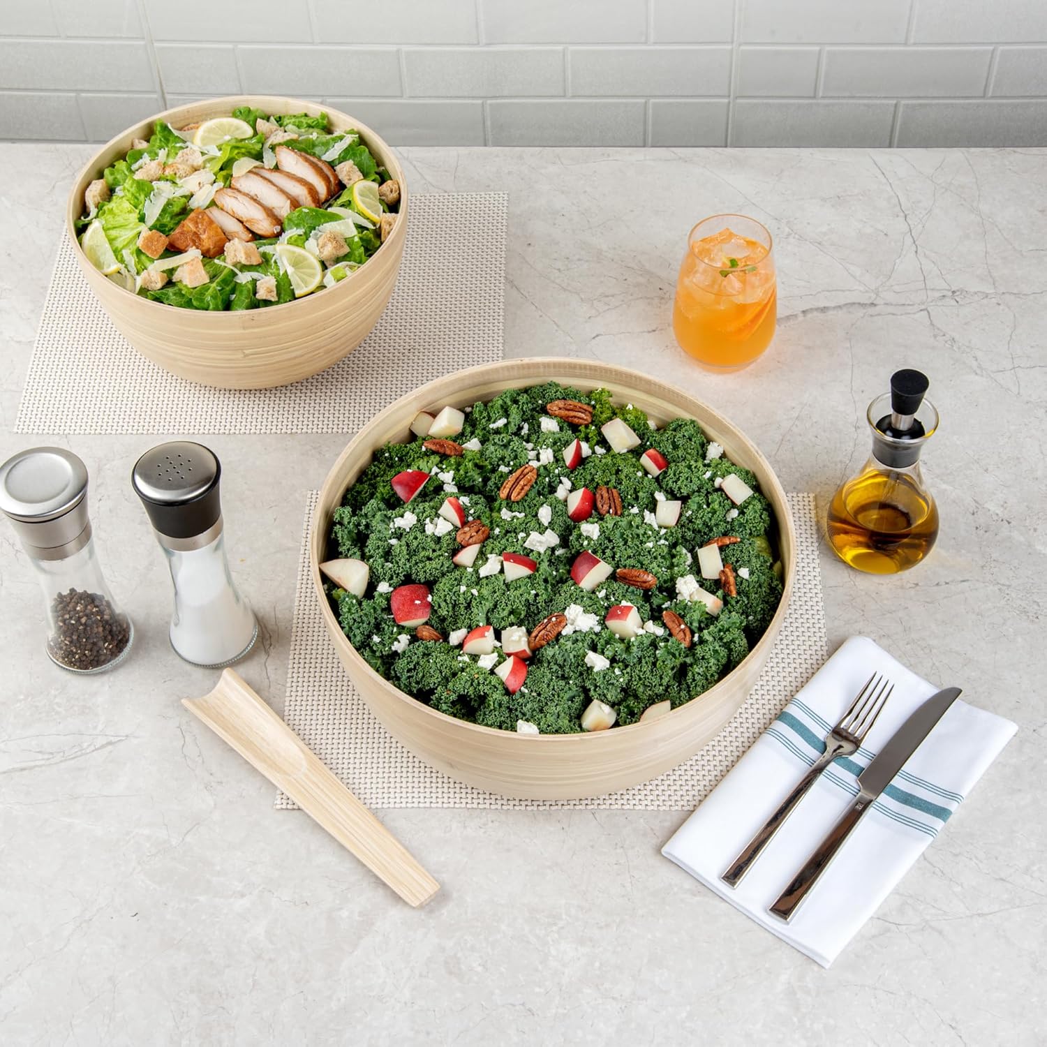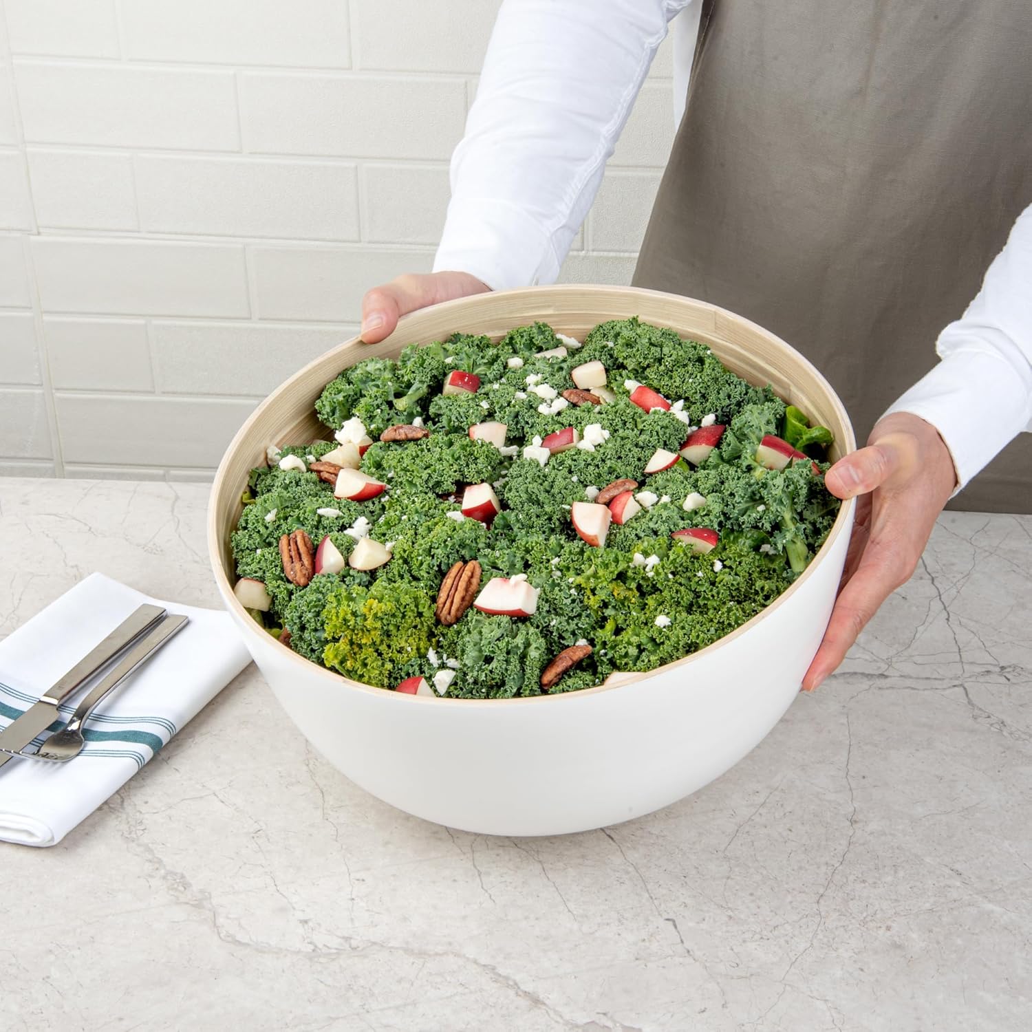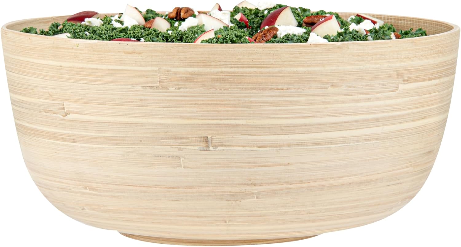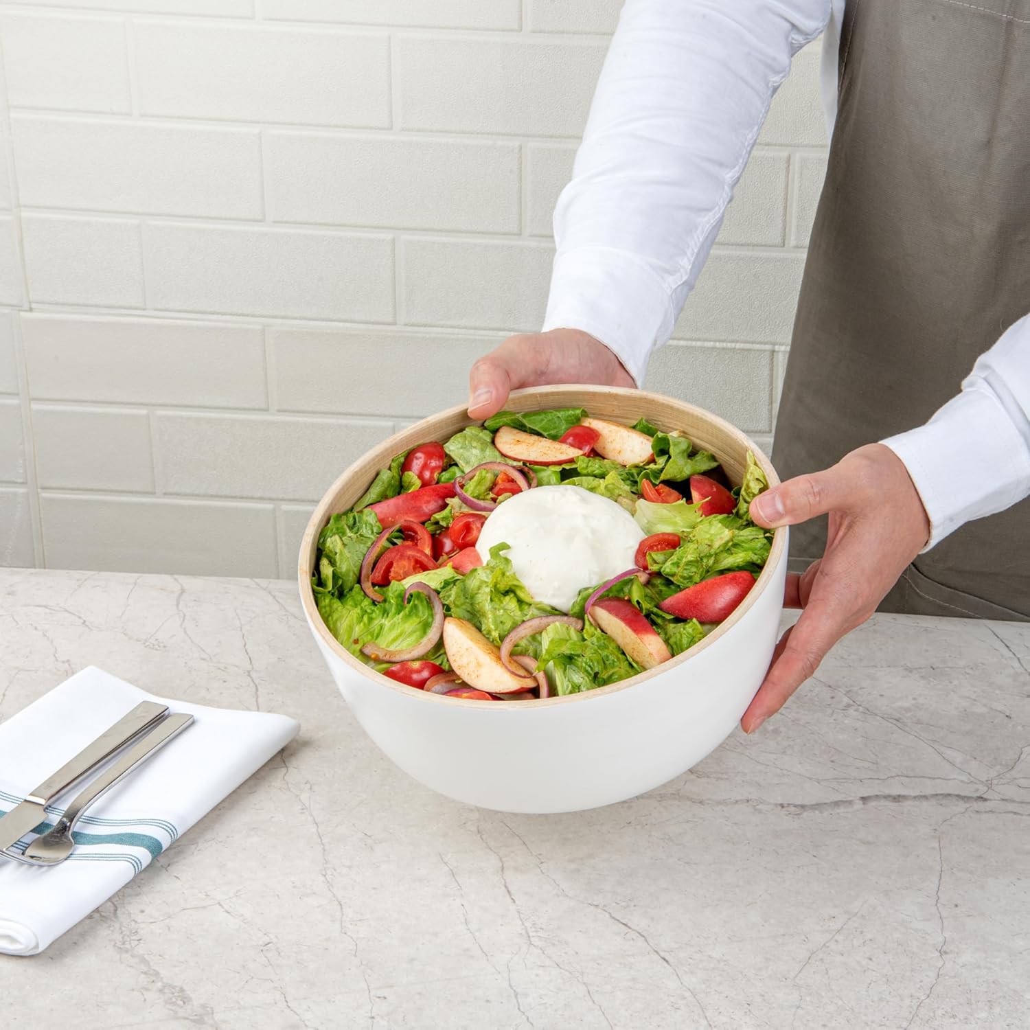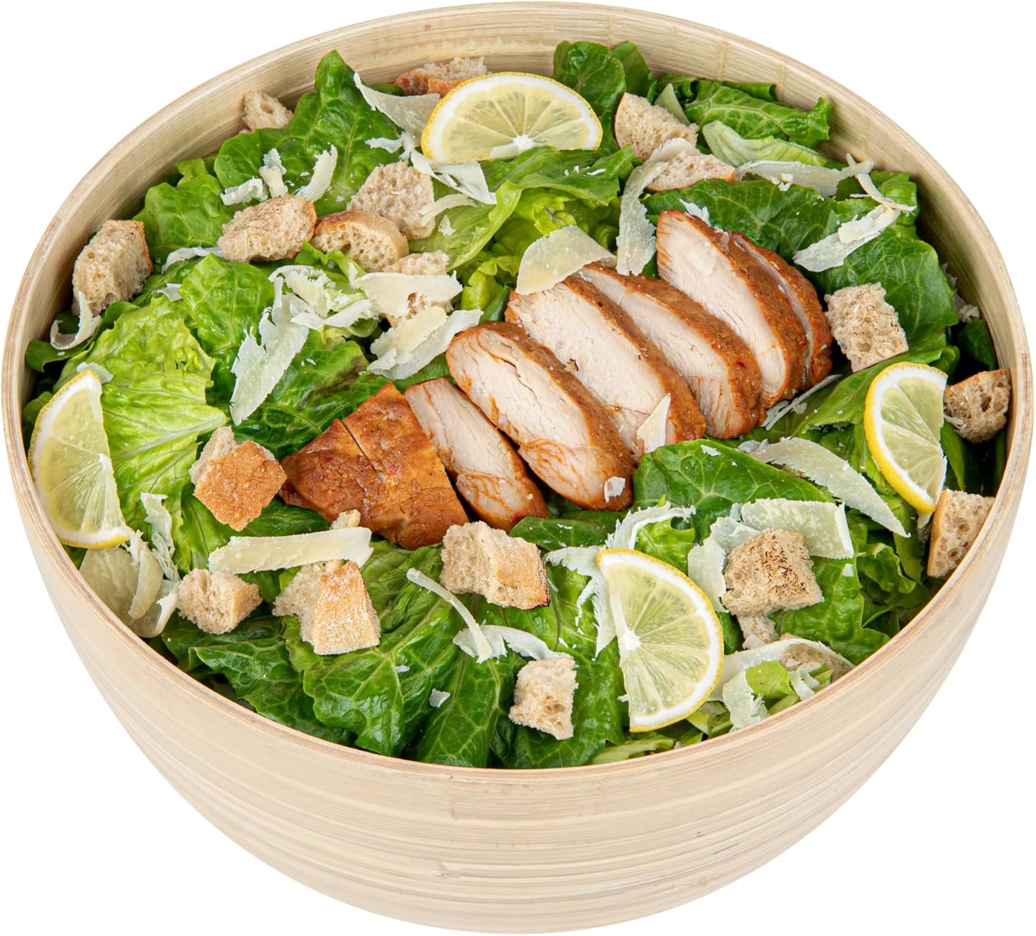 • SUITABLE FOR ALL FOODS: This bamboo salad bowl seamlessly transitions for hot and cold dishes. Its greaseproof finish allows it to handle a variety of culinary creations without compromising quality.