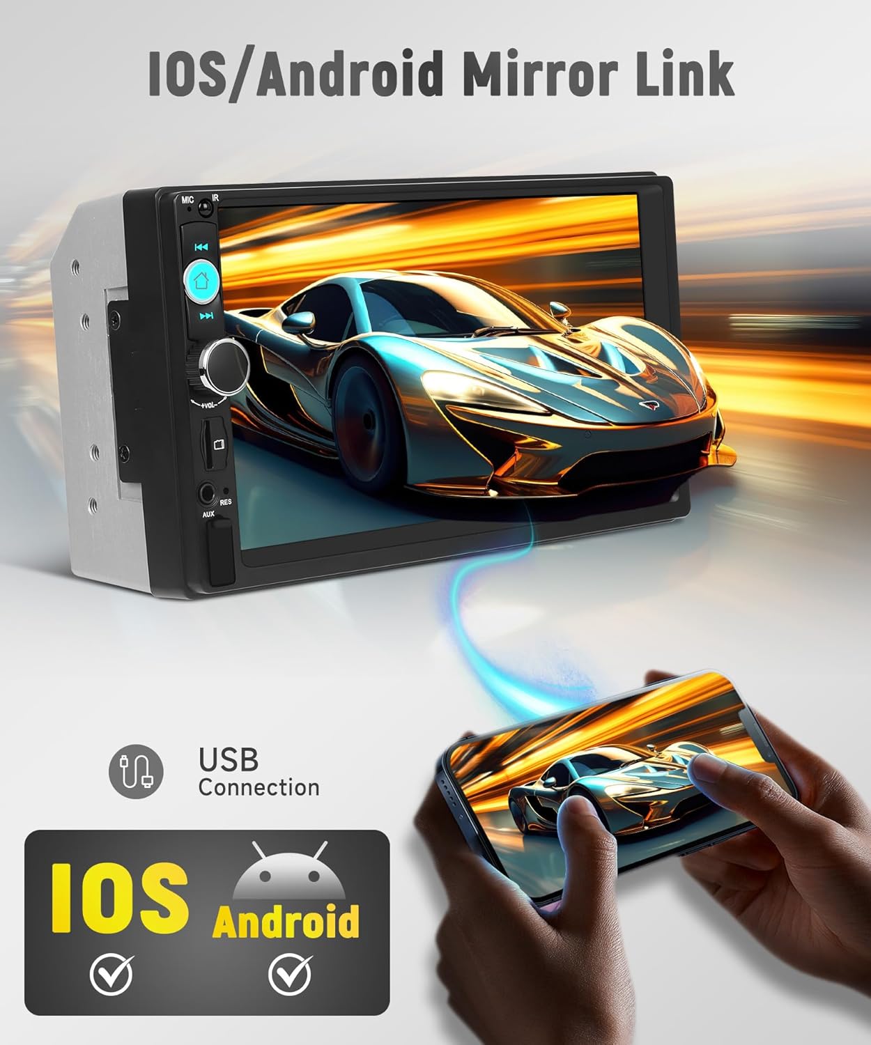 • 【Phone Mirror Link】 This 7 inch head unit supports smartphone Mirror Link function of Android phone. Use the mirror link, you will enjoy the features such as MP5 MP4 MP3 music and video, you could also use the navigation function in the car. Note: It's MP5 player, not built-in GPS, but you can realize it through mirror link function