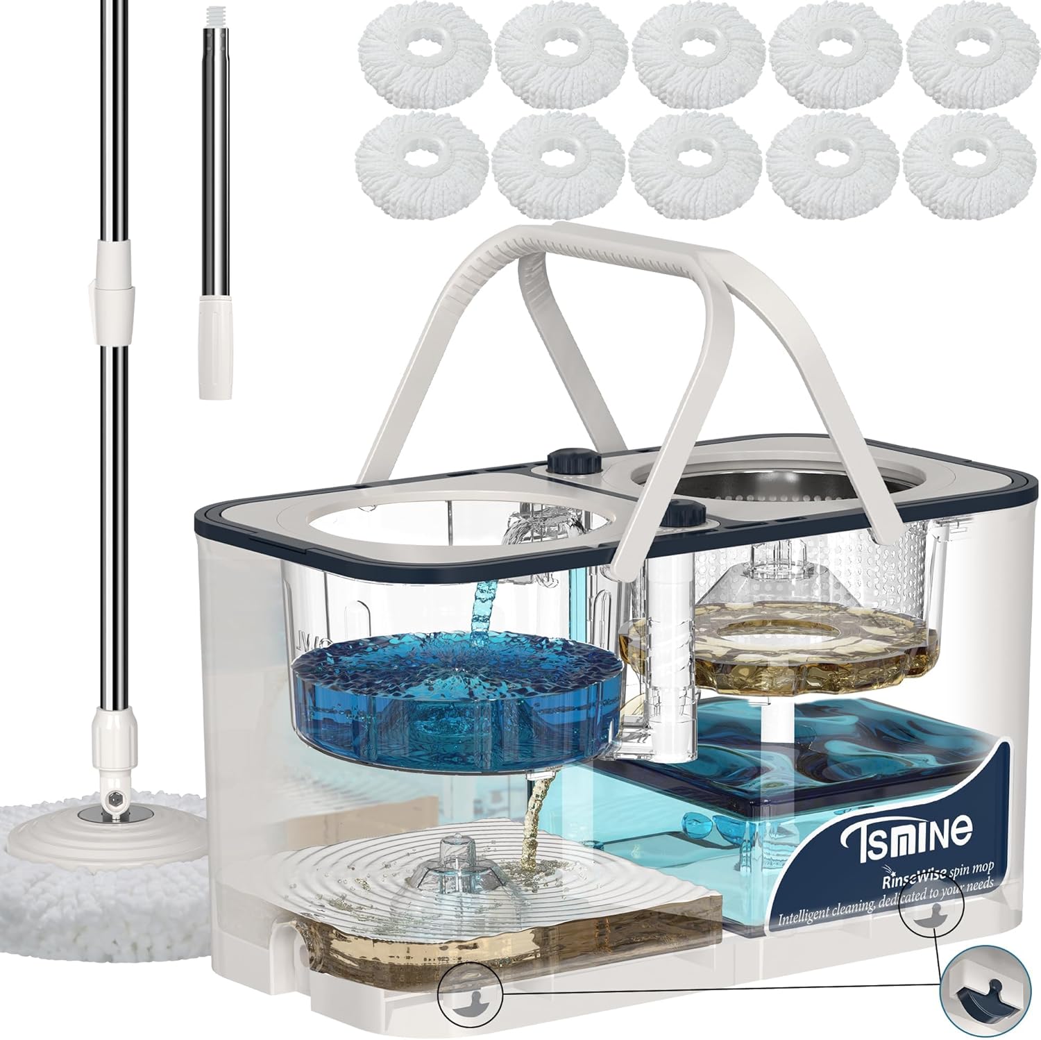 - MULTISURFACE DEEP CLEAN SOLUTION: Our RinseWise mop bucket with wringer is designed to be versatile and suitable for a wide range of floor types. Whether you have hardwood, tile, laminate, or any other hard floor surface, our spin mop is capable of delivering excellent cleaning results.
