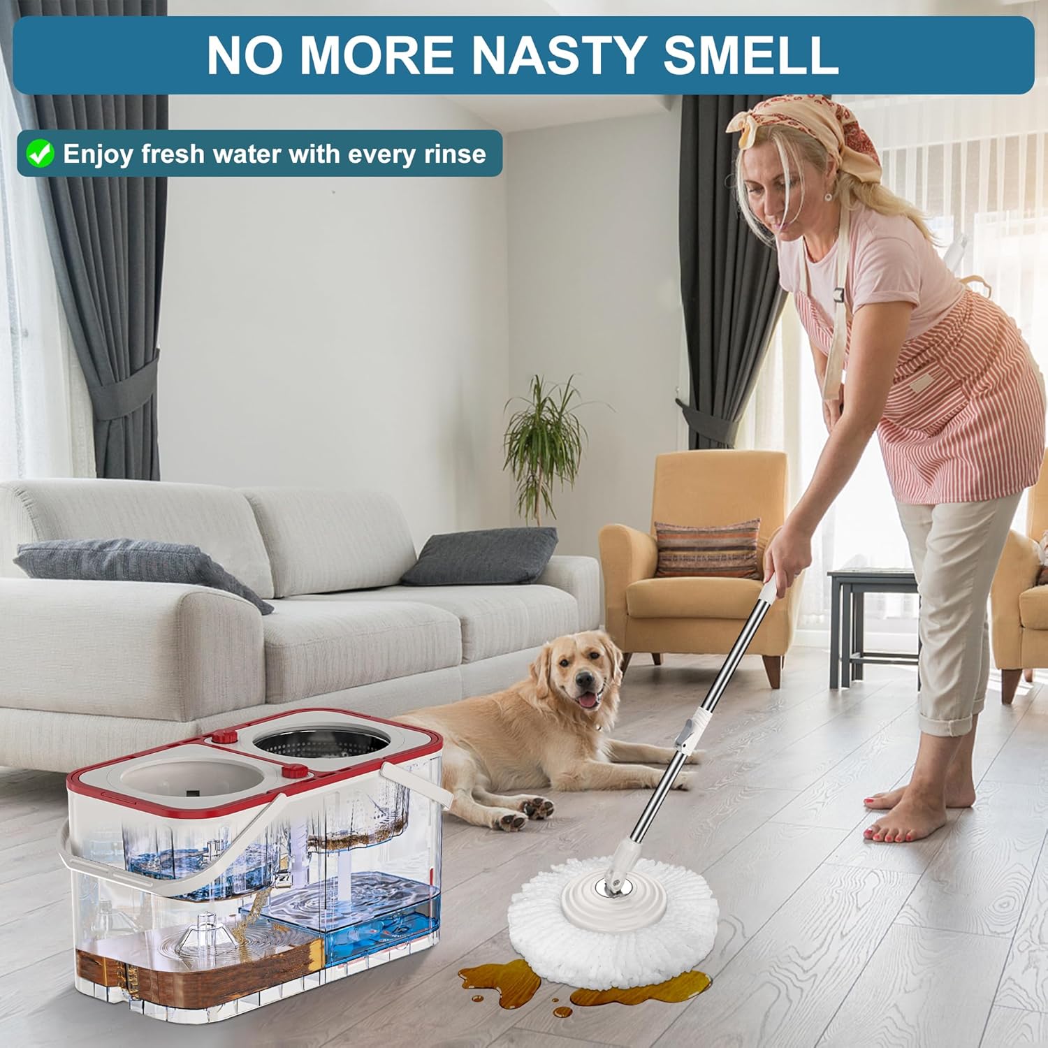 - FRESH & CLEANER HOME: We want our home to be clean and fresh for us and our pets. Our RinseWise spin mop, tailored for homes with pet dogs. Traditional mops can spread the unpleasant odor of dog urine by repeatedly cleaning in dirty water, but not ours. Our innovative design ensures the separation of foul-smelling water, leaving your floors truly fresh and clean. Safe around pets and children, say goodbye to lingering odors with ease.