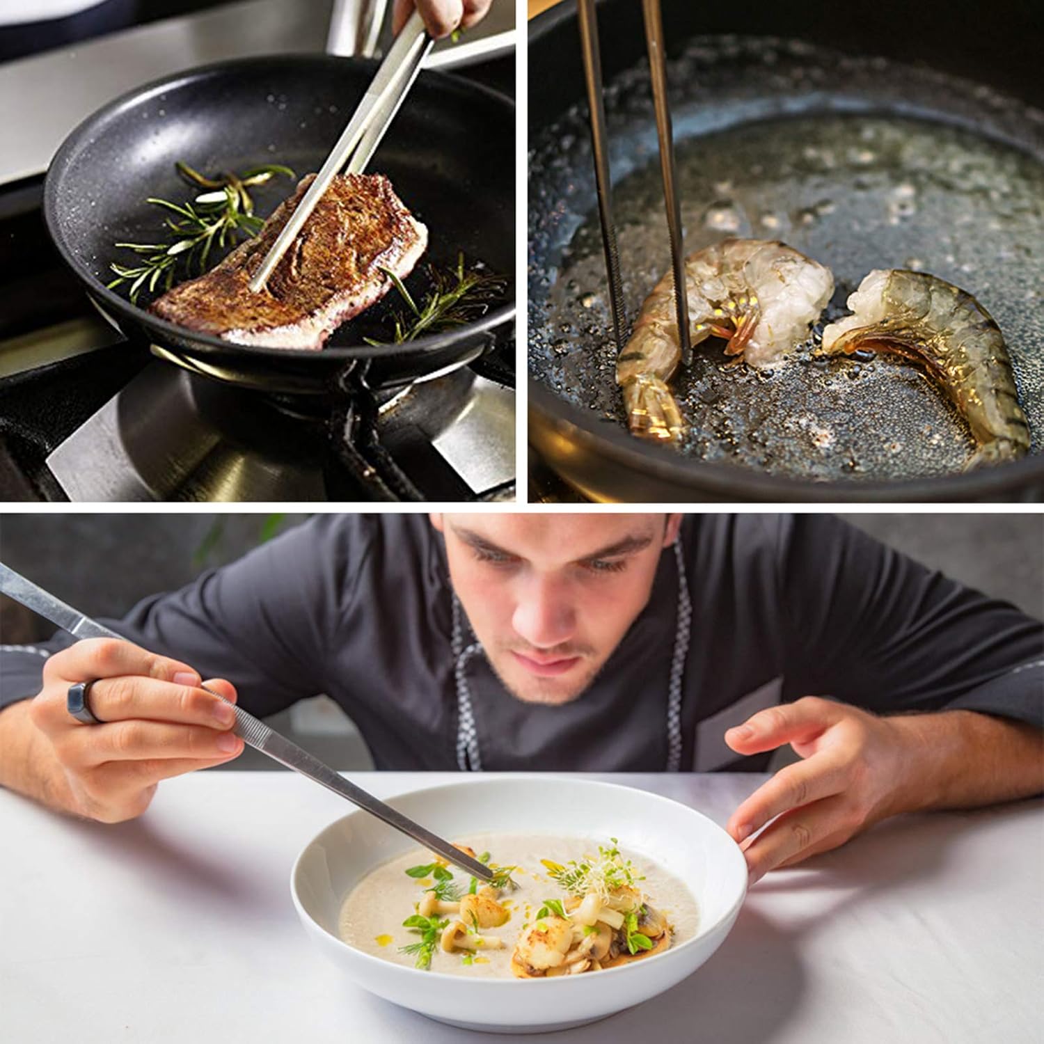 Eating is a vibrant experience connected to most of our senses. With Rivocean Kitchen Utensils, appreciation begins long before the taste buds get excited - it starts with quality, functional utensils. foot-long Tweezer Tongs! Ideal for spearing a pickle at the bottom of the jar, stir-frying, flipping tortillas, sauteing fish or serving sushi. Having the right tool for the job is a necessity in a professional kitchen. Rivoean Culinary plating tools belong in every chef's kitchen. Order now to get what you want! Enjoy a professional kitchen tour!