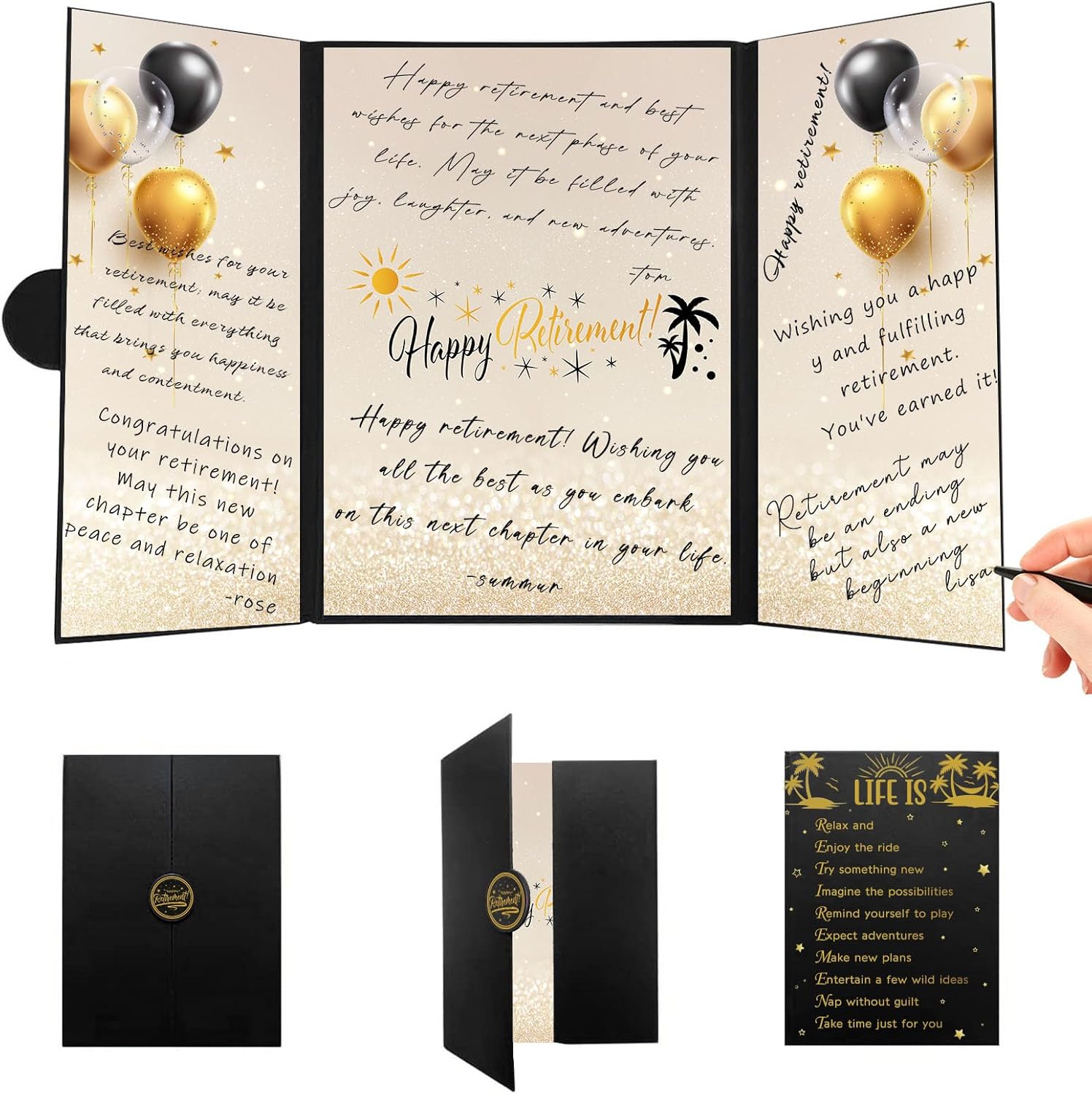 • Packaging includes :- 1PC retirement guestbook, Unfolded size: 46*31 cm /18.1*12.2 in, Folding size: 23*31 cm /9.05*12.2 that lets friends and family write down any wishes or words they want to say. (Note: You need to use your own signature/marker pen, the product does not provide pens