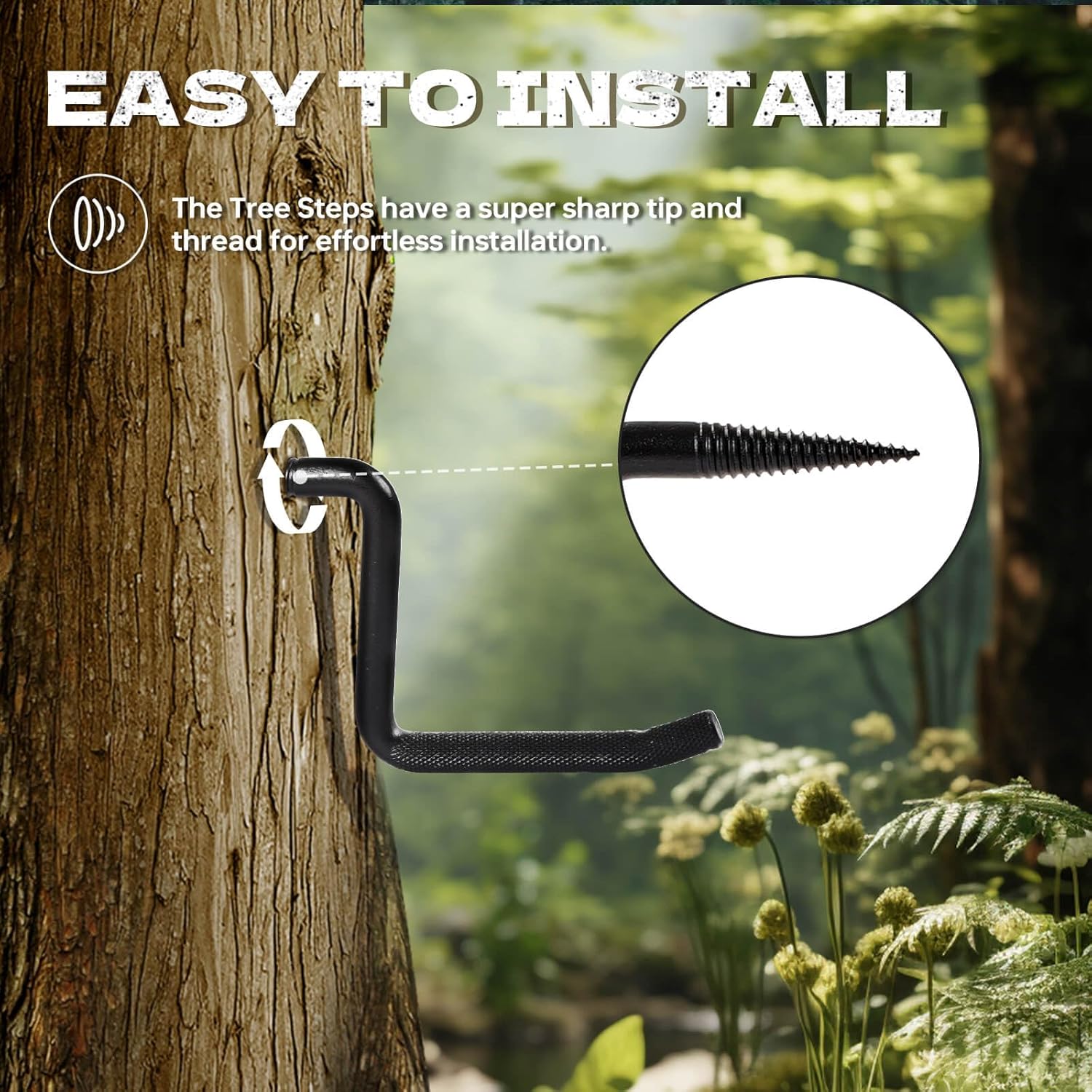 EASY TO INSTALL: There is a super sharp tip at head of each step. The Self-Tapping Screw can rotate 360 degree, can help you install the tree stand into tree very easily and quickly.