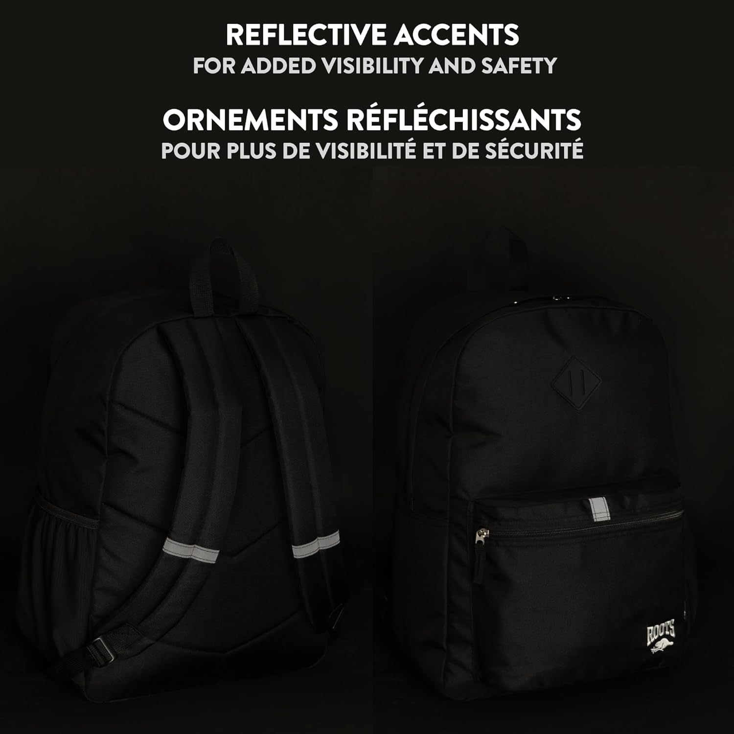Roots Teen Lightweight Backpack — Made from Recycled Polyester with 15.6" Laptop Compartment, Rain Flap, Bottle Pocket, Reflective Accent, and Back Padding — 34L, Black