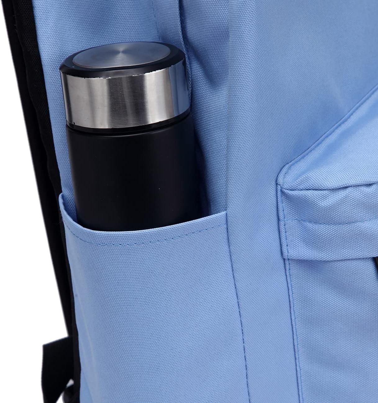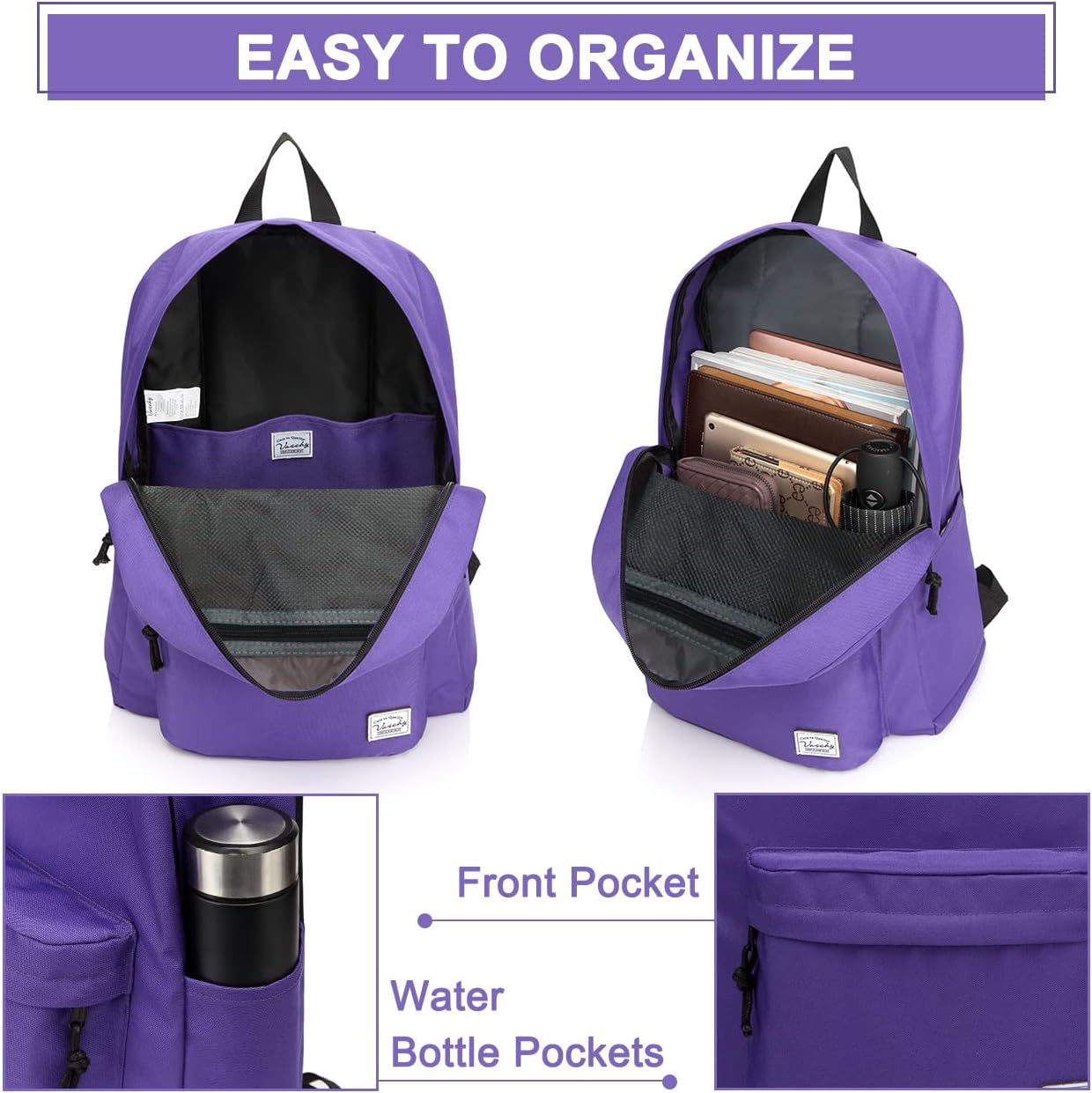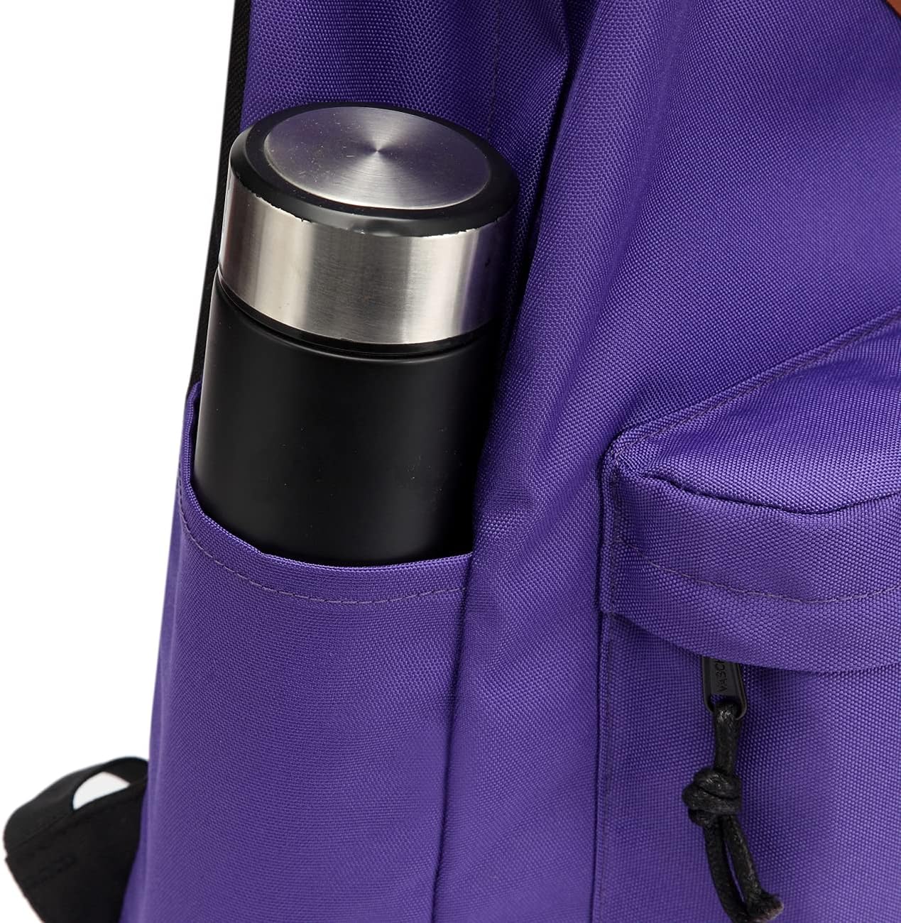 - UPDATED STRUCTURE: The basic school backpack has one top-loading compartment for storing the majority of your gear books and notebooks. Main zippered compartment with file divider,fully padded back and shoulder straps for ultimate comfort,front exterior easy access zipper pocket is for your pens, highlighters. Two water bottle pockets on both sides for drinks.