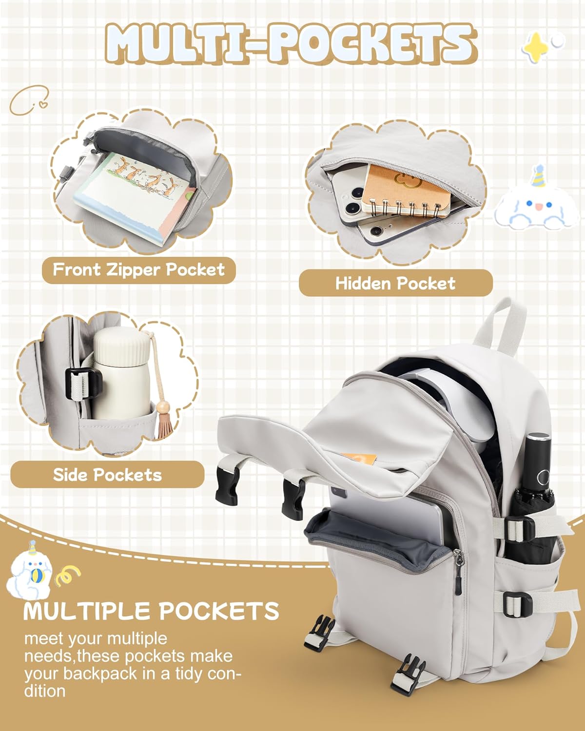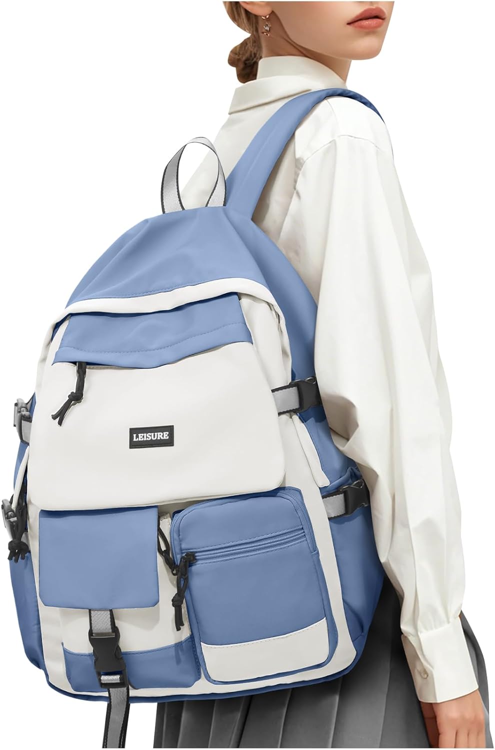 - 【Lightweight School Bag】This School bag is made of water resistant durable polyester, good air permeability and heat dissipation with two padded shoulder straps, offers lightweight carrying and of force reinforcement, relieve the pressure of your shoulders, and keeping cool when you carry it for a long time.The opening and closing zipper design can hang some small objects on it to increase its beauty.