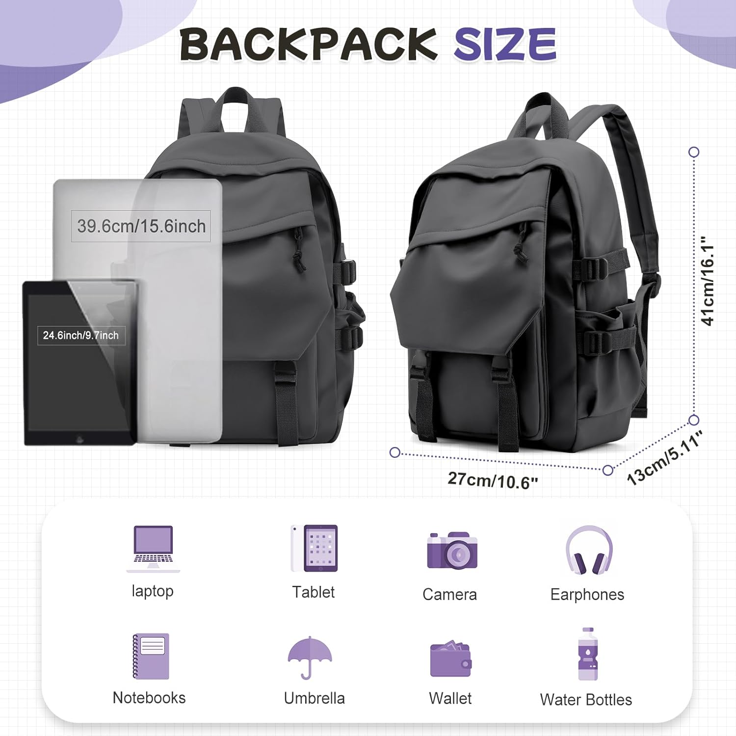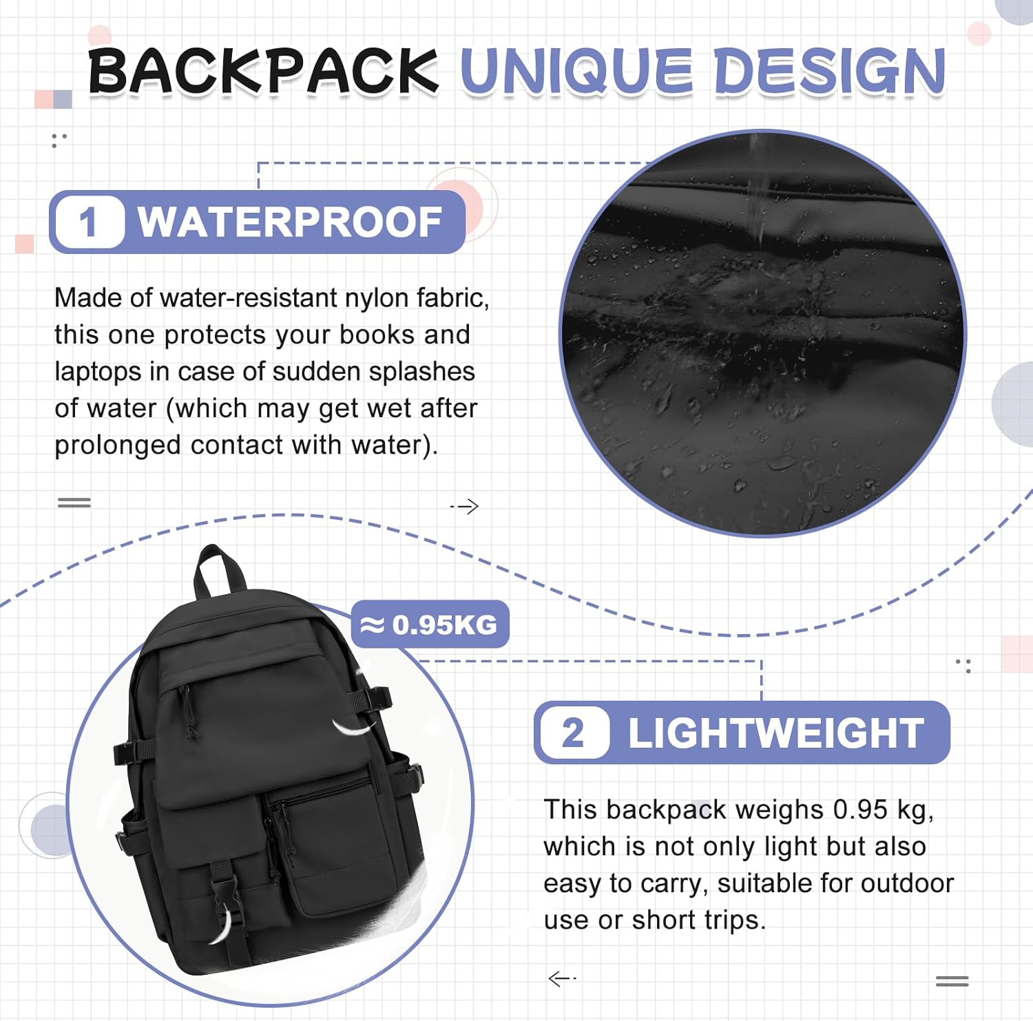 School Backpack for Women Men College High School Bags for Boys Girls Casual Daypack Laptop Backpack Waterproof Black Bookbag Travel Rucksack