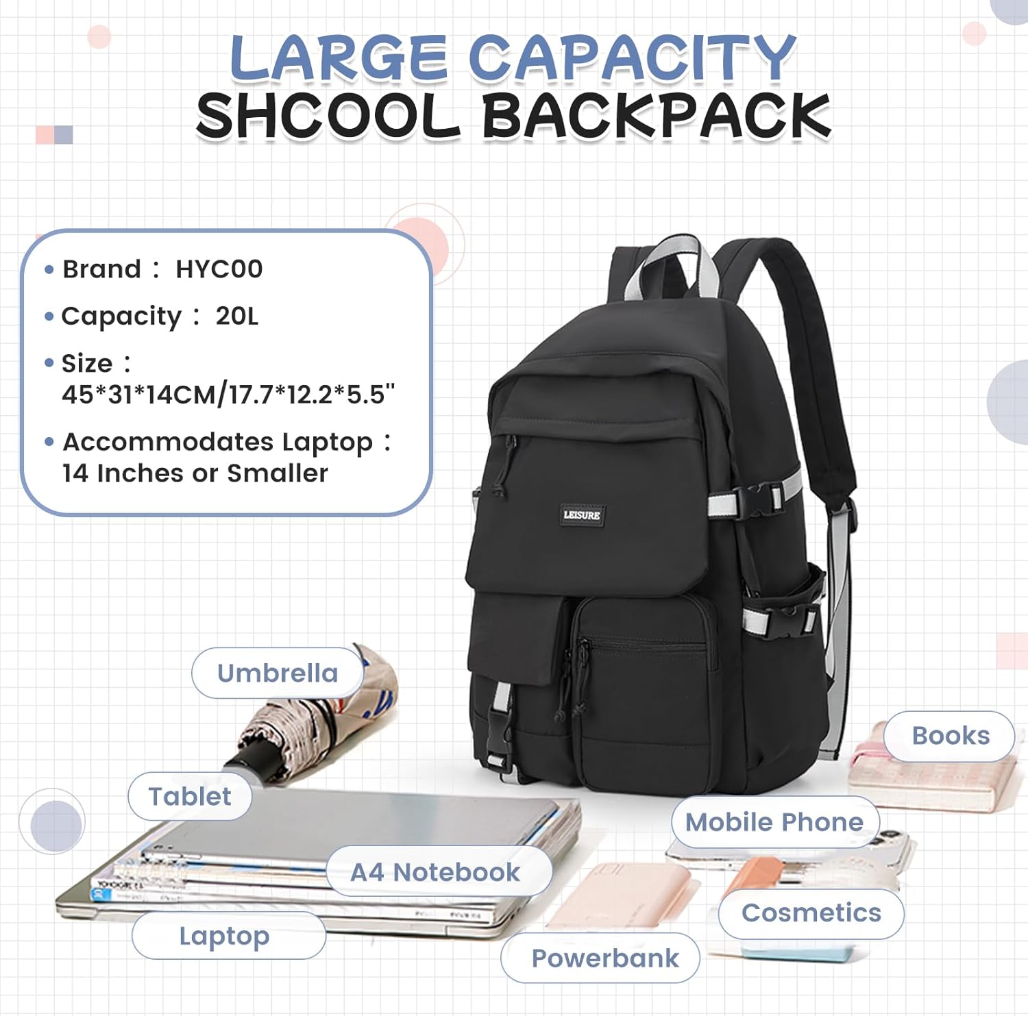 - 【Multifunctional Casual Backpack】Our school bag is perfect for teenagers and can be used by girls and boys. Except use as travel bag,school bag, casual daypack. The school bag is perfectly use as laptop rucksack, convenient for students to place electronic devices, such as 14 inch laptop etc.It is recommended for school/office/shopping/camping/hiking/trip/travelling/daily use.