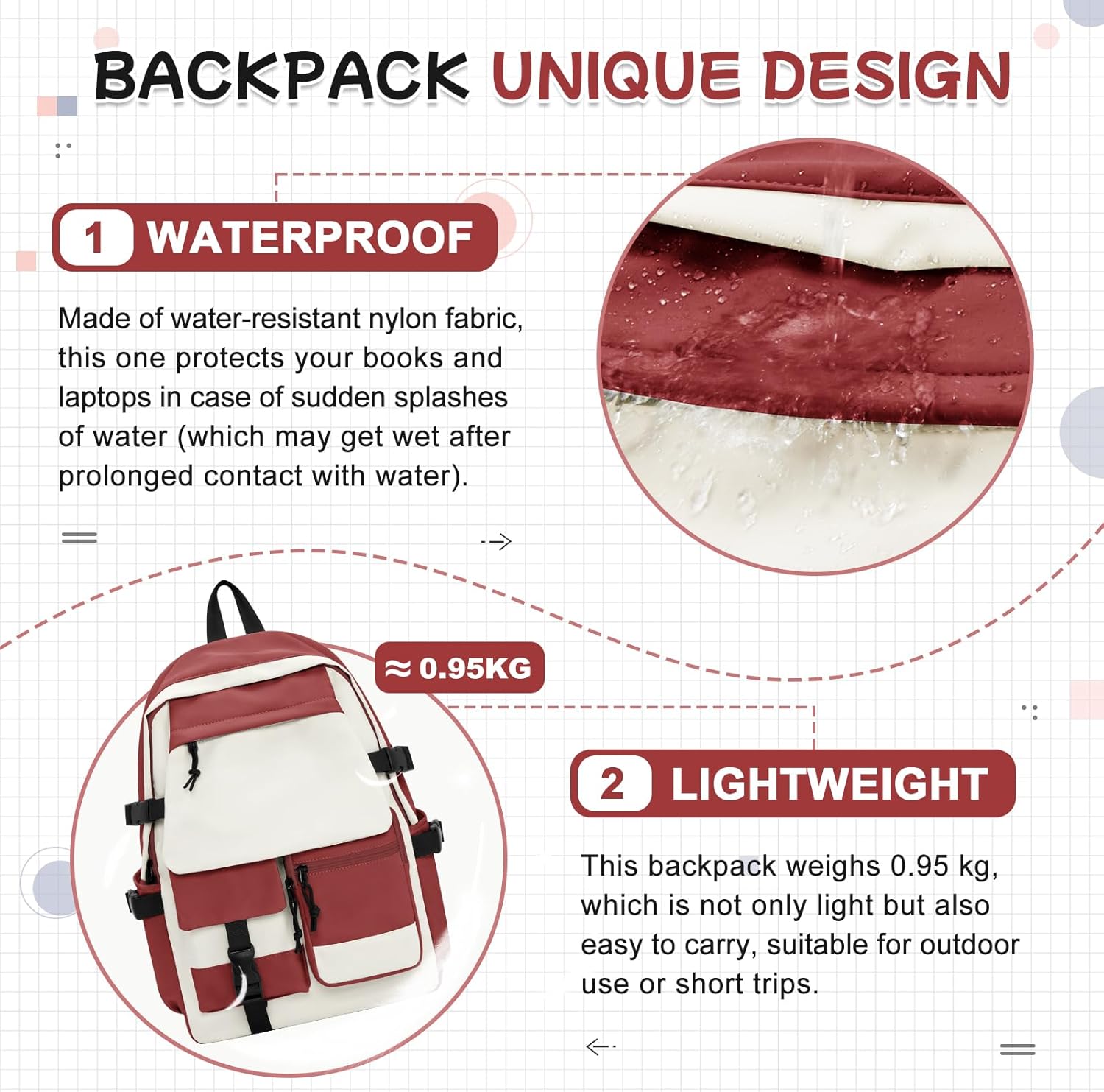- 【Multi-Pockets Backpack】The College laptop backpack for Men Women has one top-loading compartment for storing the majority of your gear books and notebooks, it can also fit up to 14inch laptop backpack. Main zippered compartment with file divider, Two front exterior easy access zipper pocket is for your pens, highlighters. Two water bottle pockets on both sides for drinks. One anti-theft zipper pocket for your valuable things.