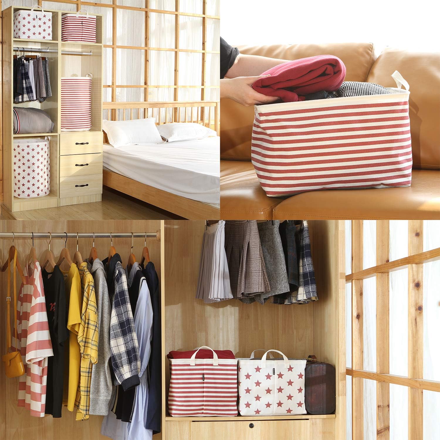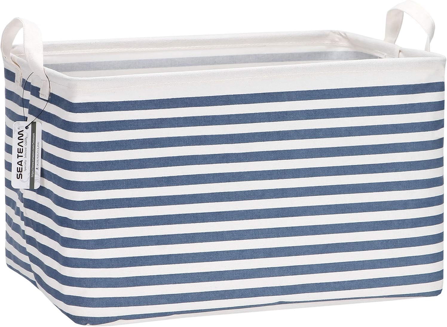 At Sea Team, storage bins aren't just generic white plastic bins with a lid anymore. Add a personal touch to your décor with unique storage options - use a set of baskets to store odds and ends on shelves, or try colored, foldable fabric laundry hampers in the living room. All of our baskets are made of fabric like cotton, canvas, linen, jute and burlap. They are stylish, sturdy and reusable. From a small basket to a large laundry hamper, storage bins can be a beautiful and functional accent to any room.