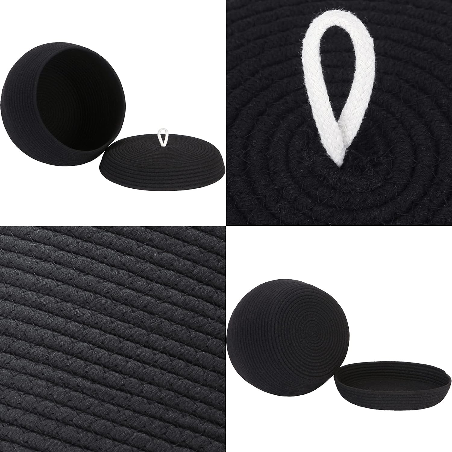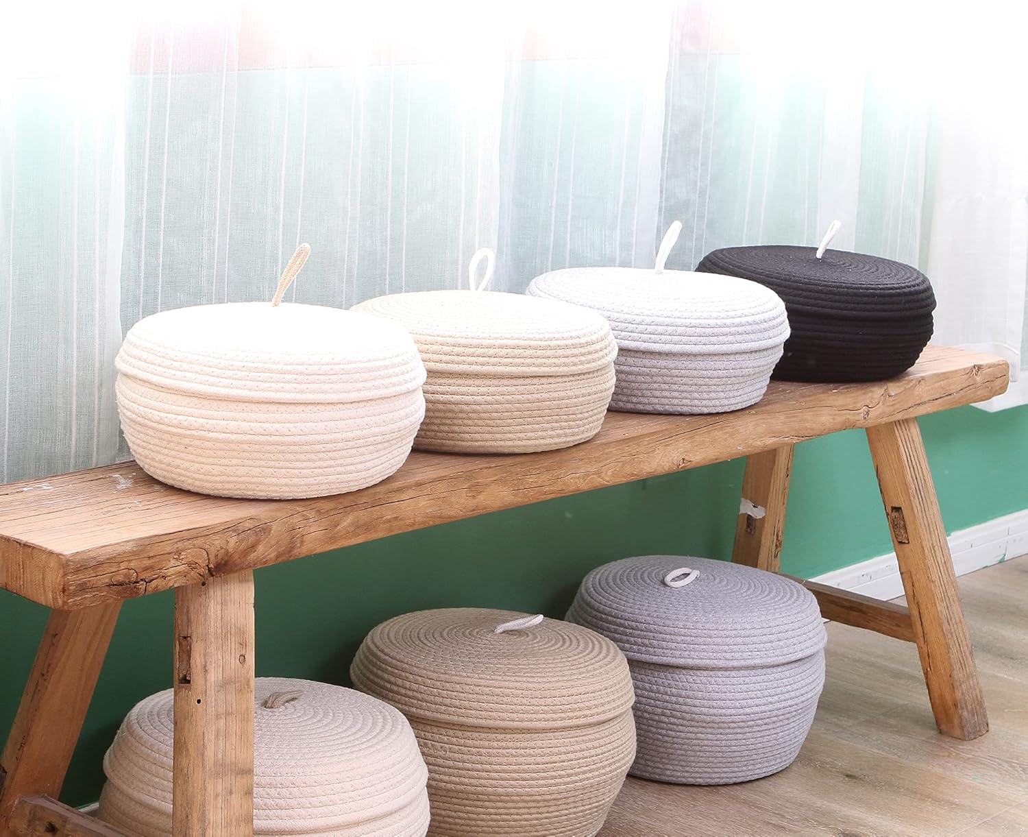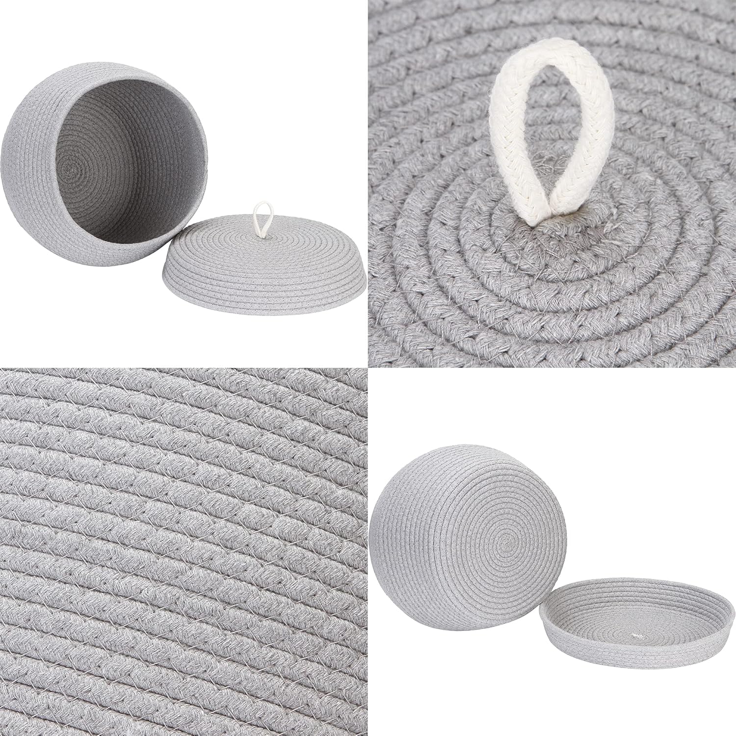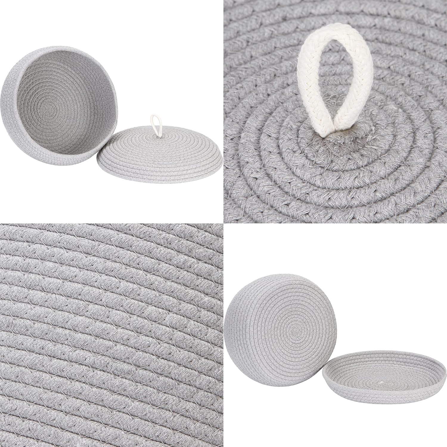 Sea Team Round Cotton Rope Storage Basket with Lid, Decorative Woven Storage Bin, Pot, Caddy, Organizer, Container for Snacks, Towels, Plants (Grey, Small)