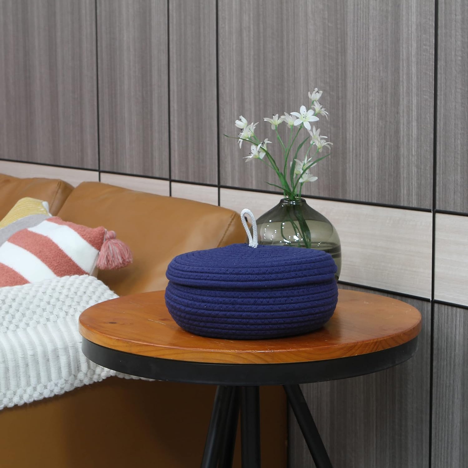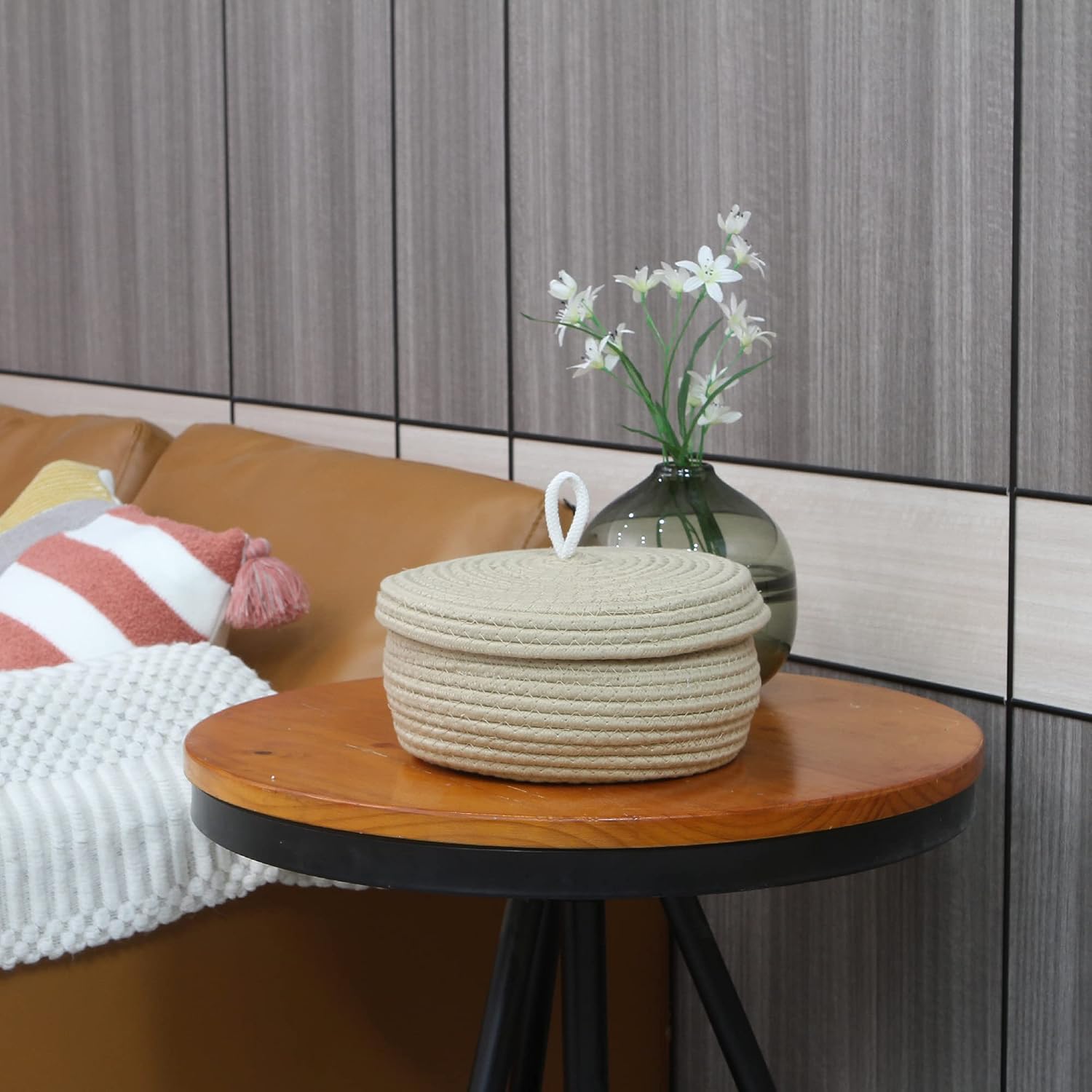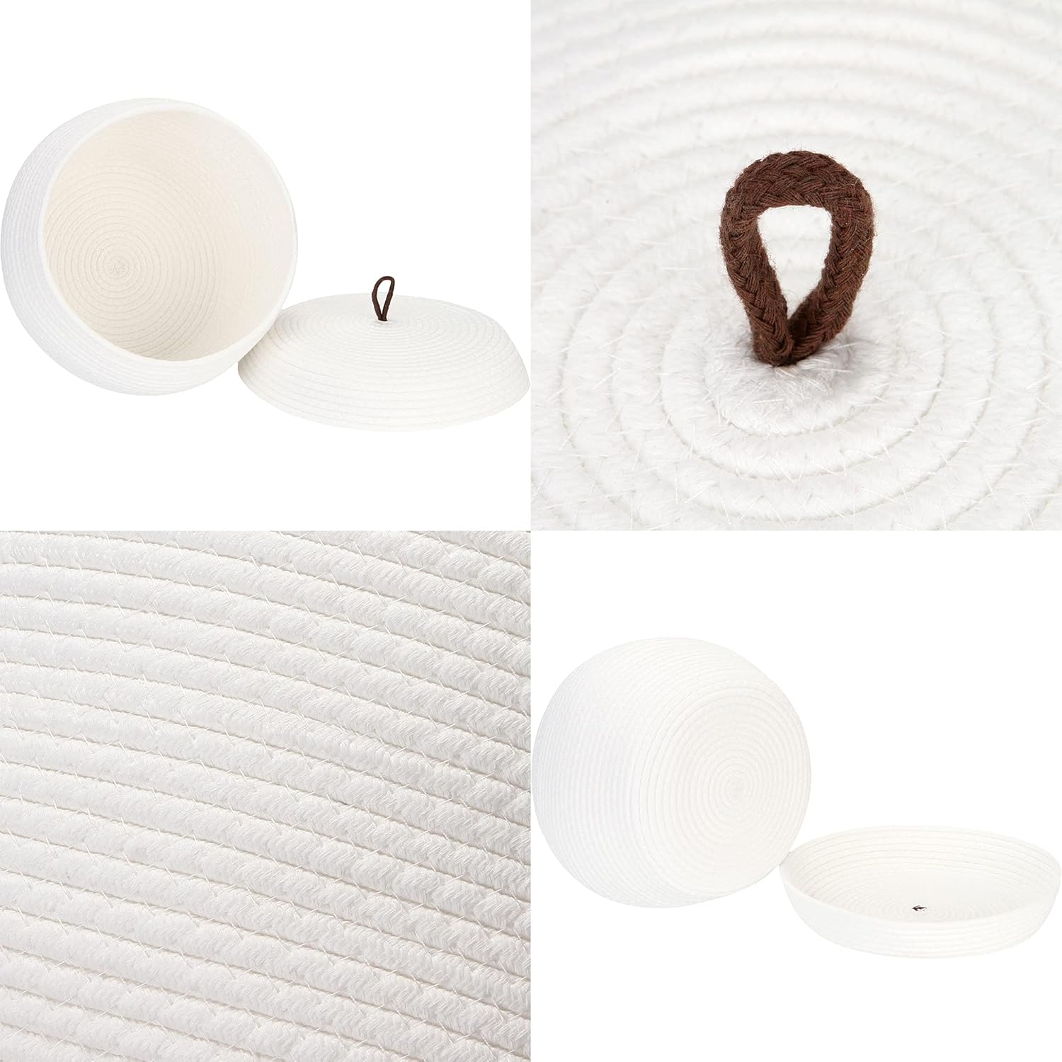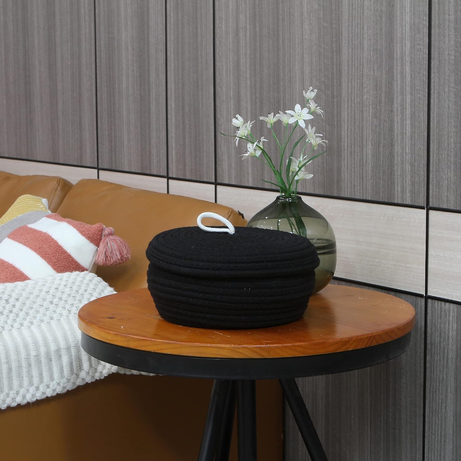 Sea Team Round Cotton Rope Storage Basket with Lid, Decorative Woven Storage Bin, Pot, Caddy, Organizer, Container for Snacks, Towels, Plants (Grey, Small)