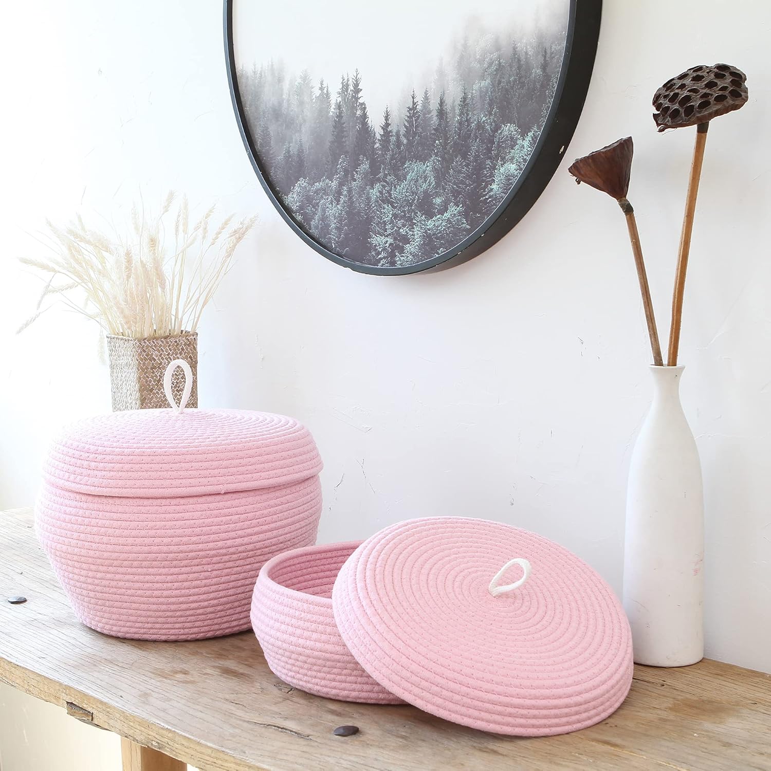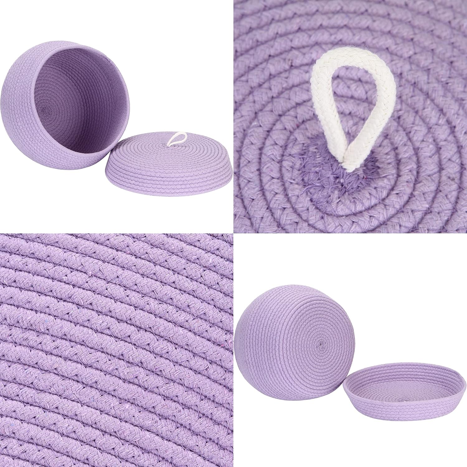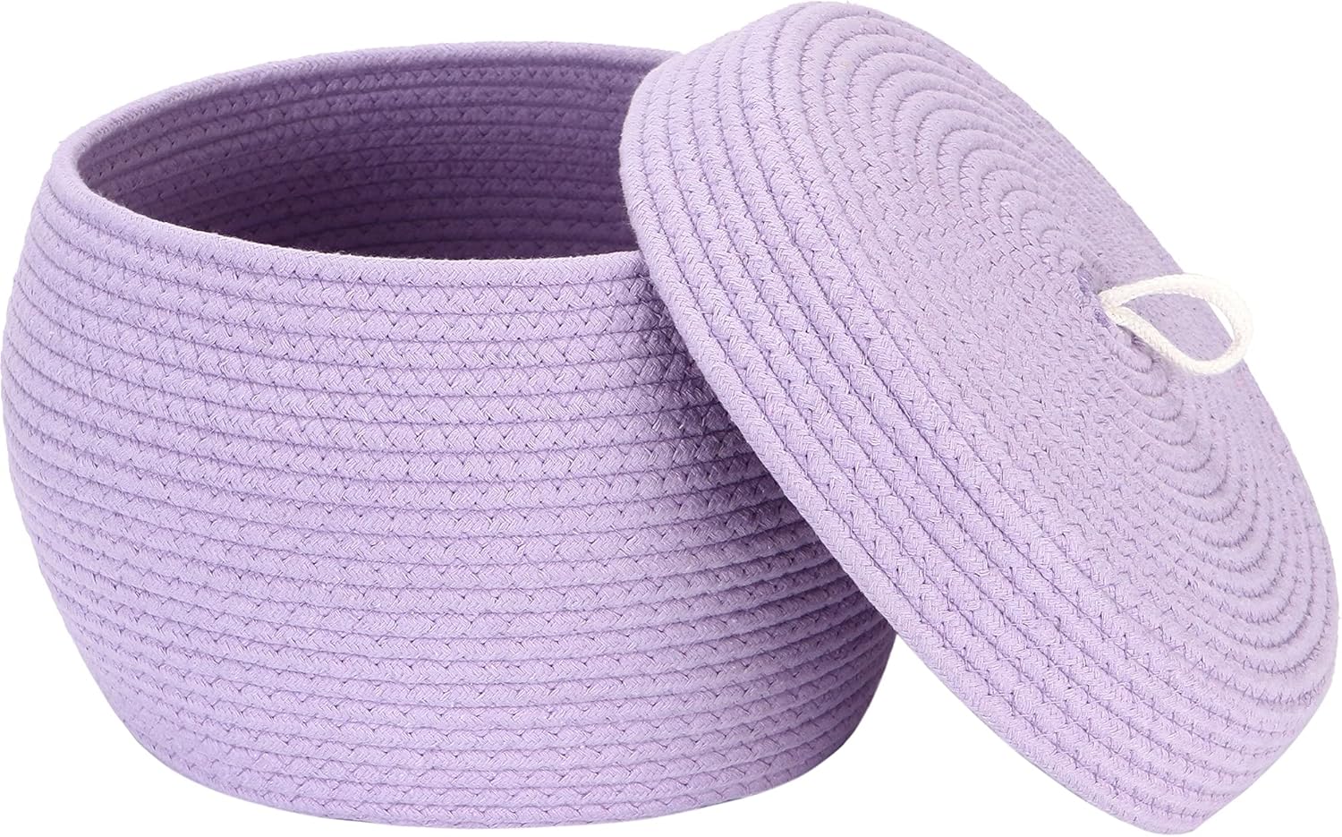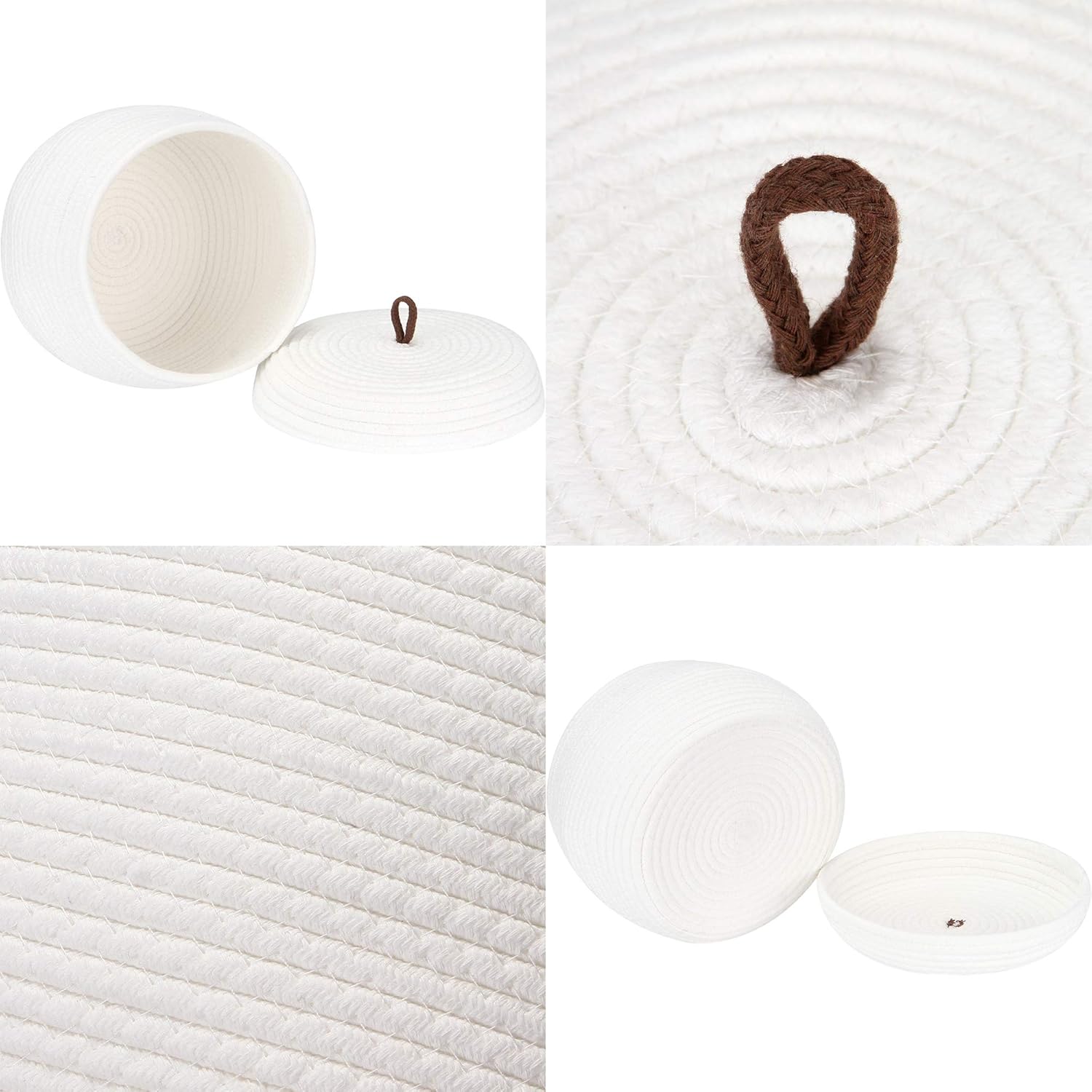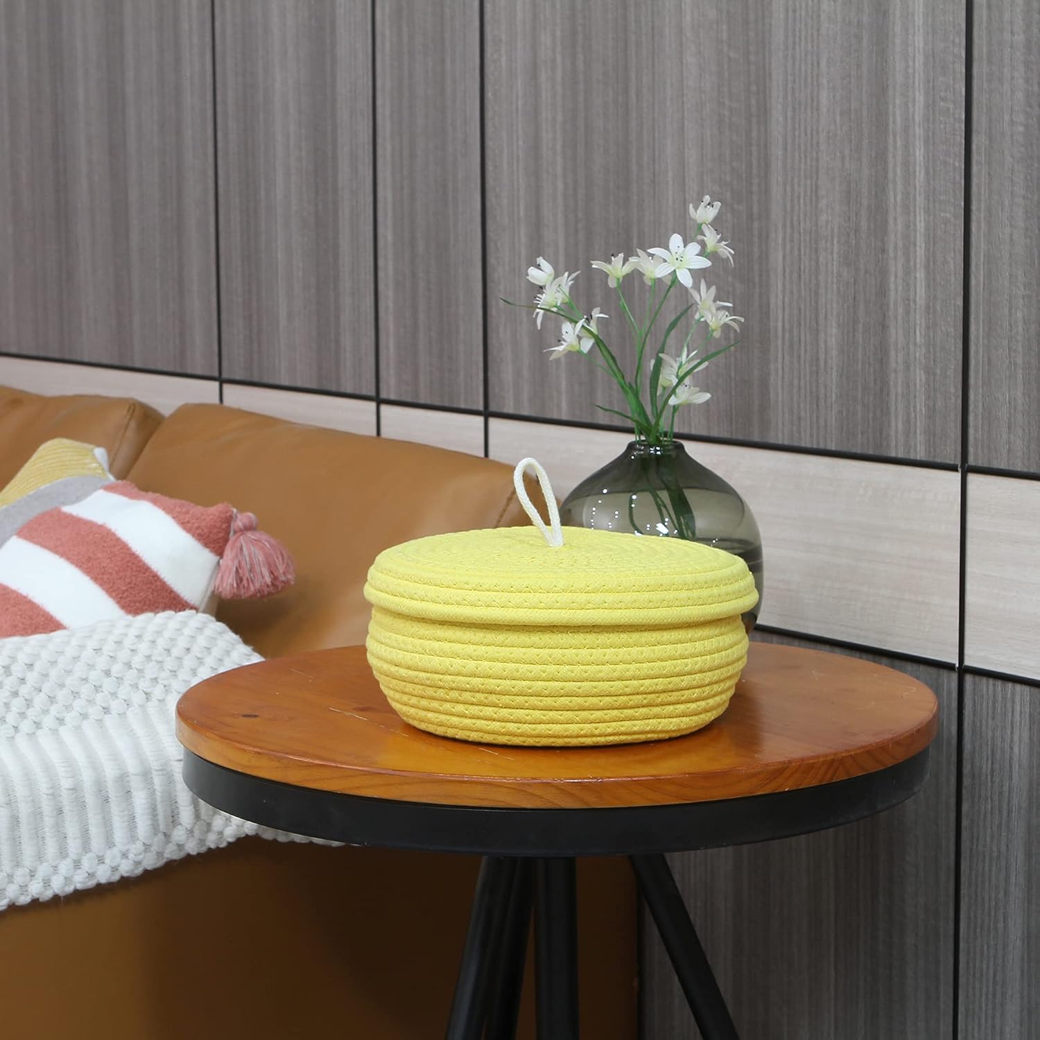 Sea Team Round Cotton Rope Storage Basket with Lid, Decorative Woven Storage Bin, Pot, Caddy, Organizer, Container for Snacks, Towels, Plants (Grey, Small)
