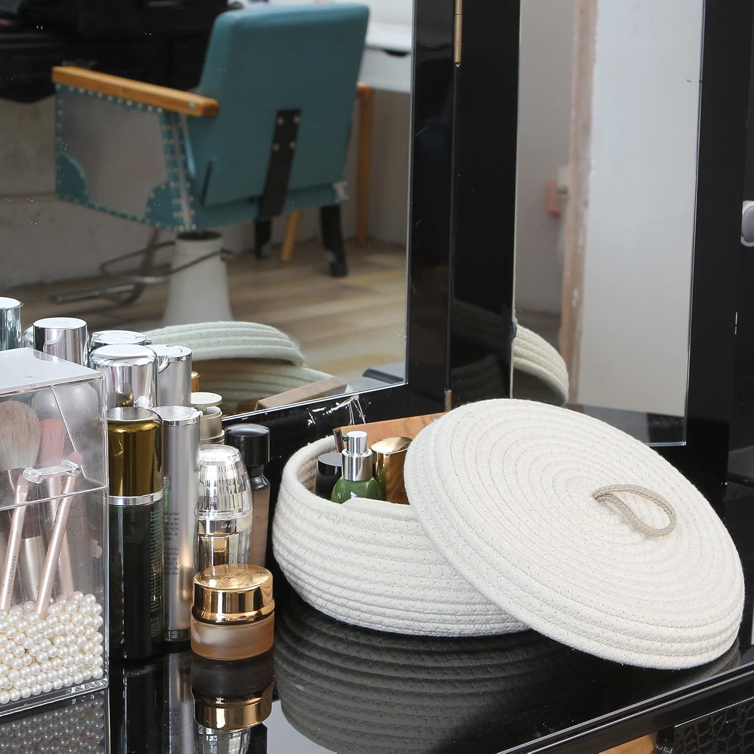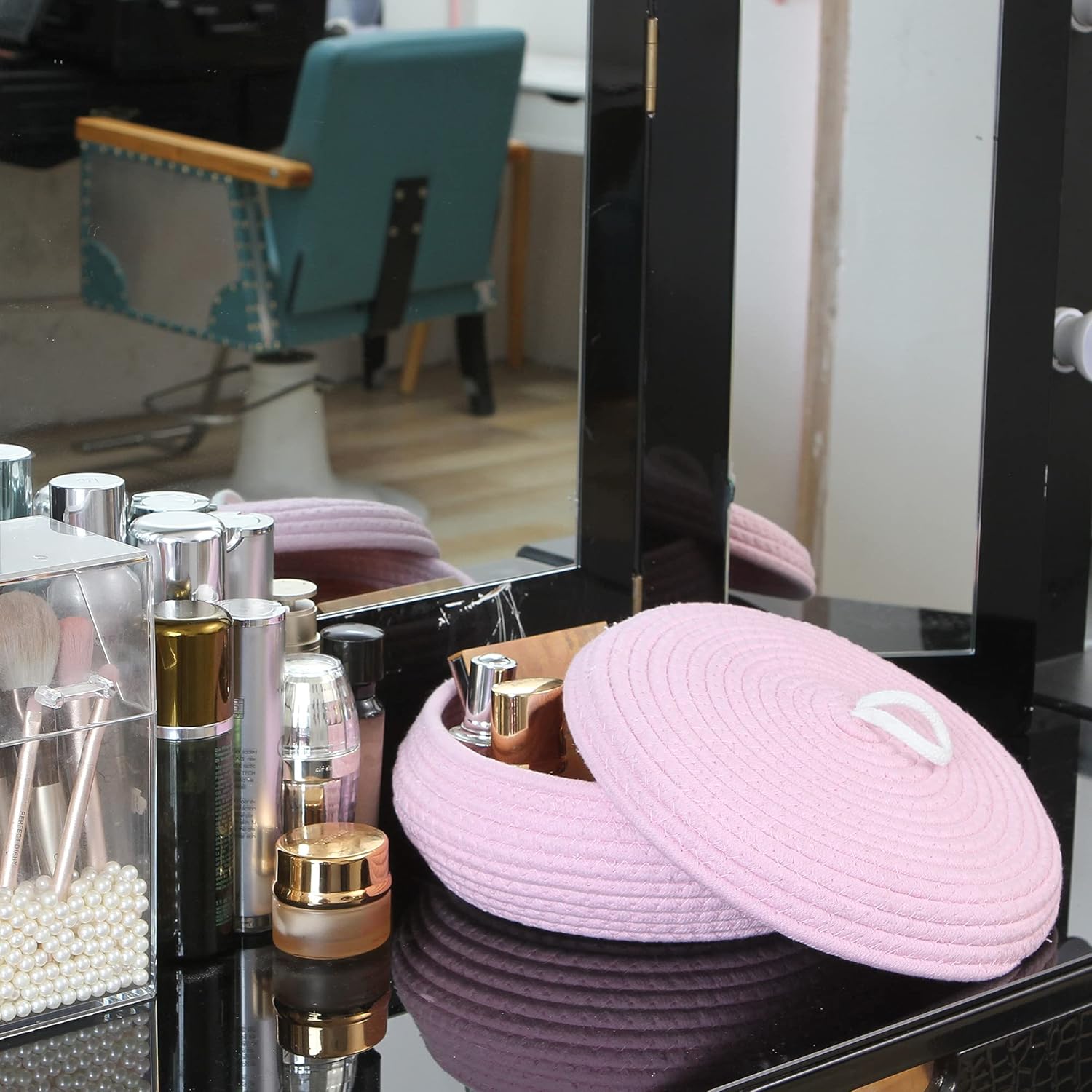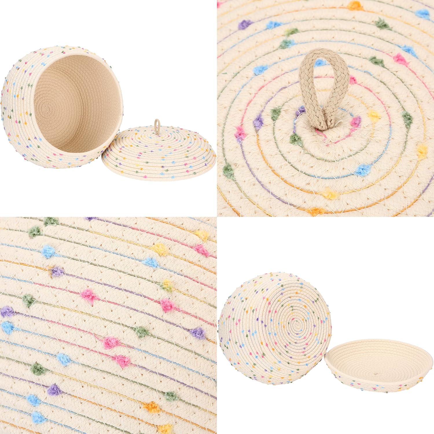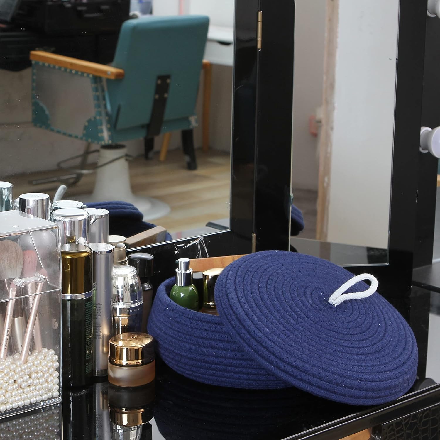 Sea Team Round Cotton Rope Storage Basket with Lid, Decorative Woven Storage Bin, Pot, Caddy, Organizer, Container for Snacks, Towels, Plants (Grey, Small)